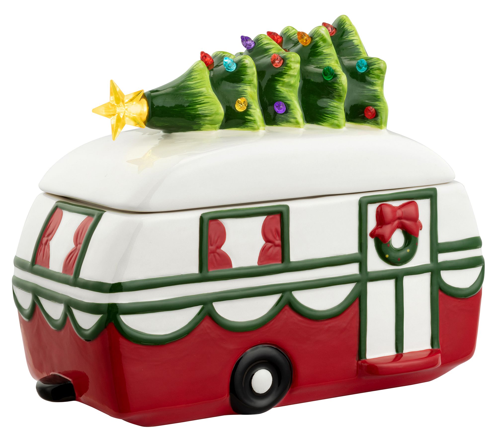 You're sure to be one happy camper with this nostalgic LED camper cookie jar. From Mr. Christmas.