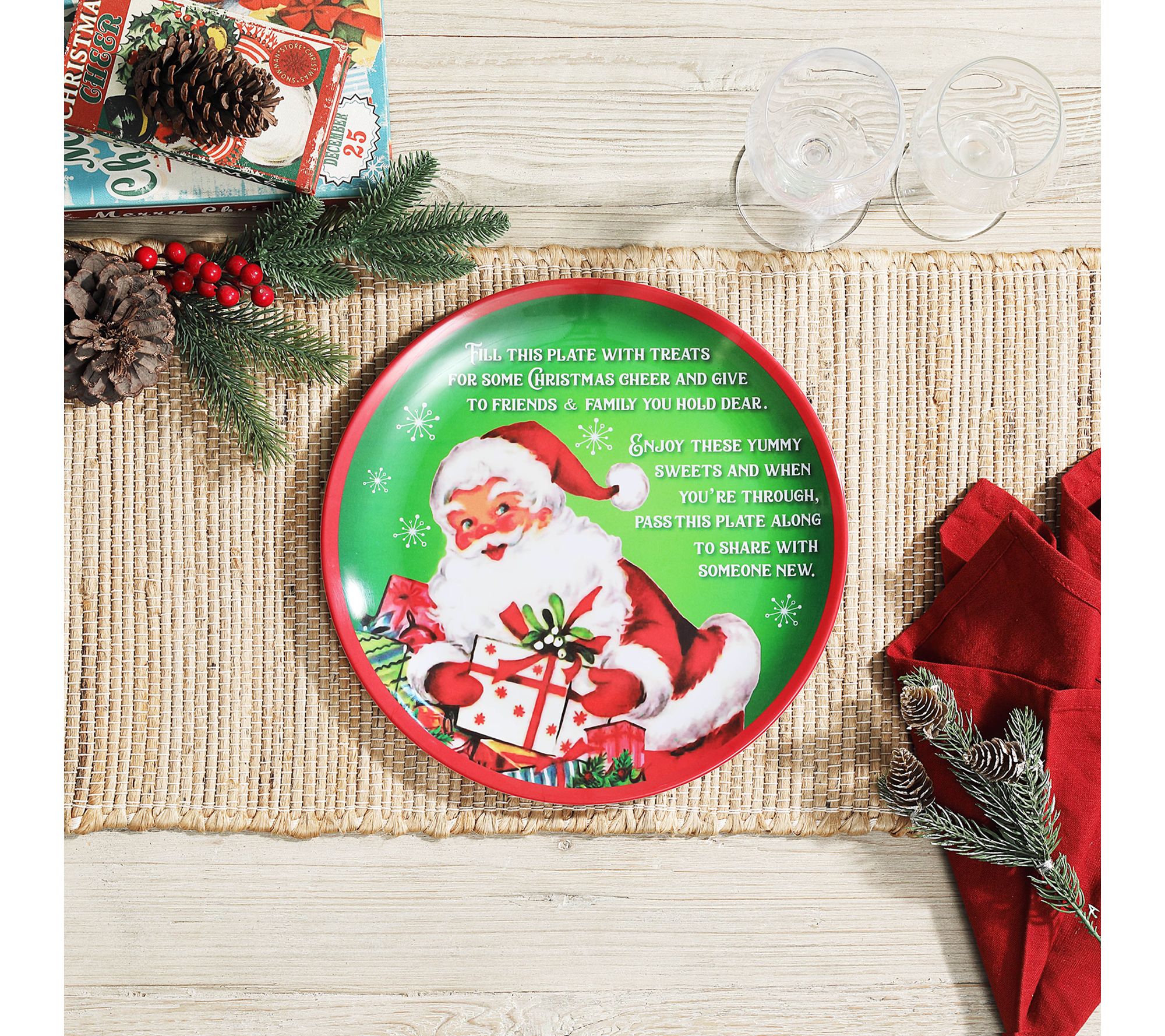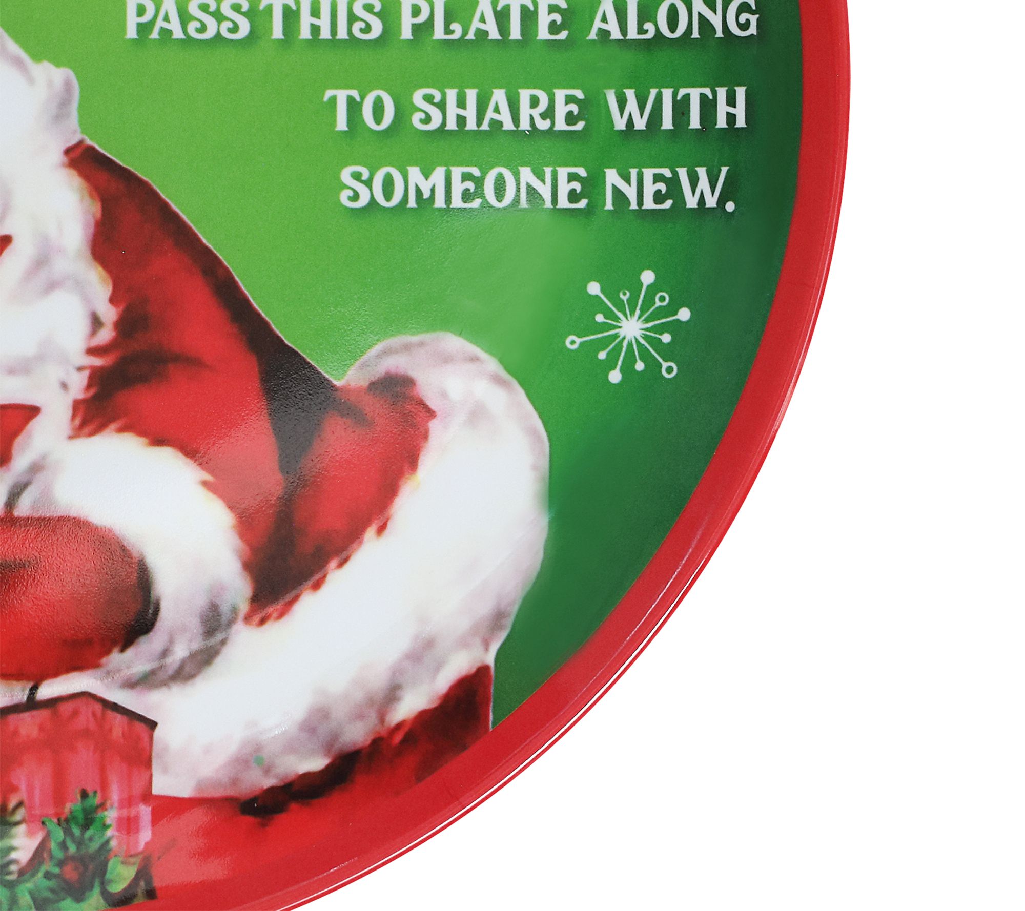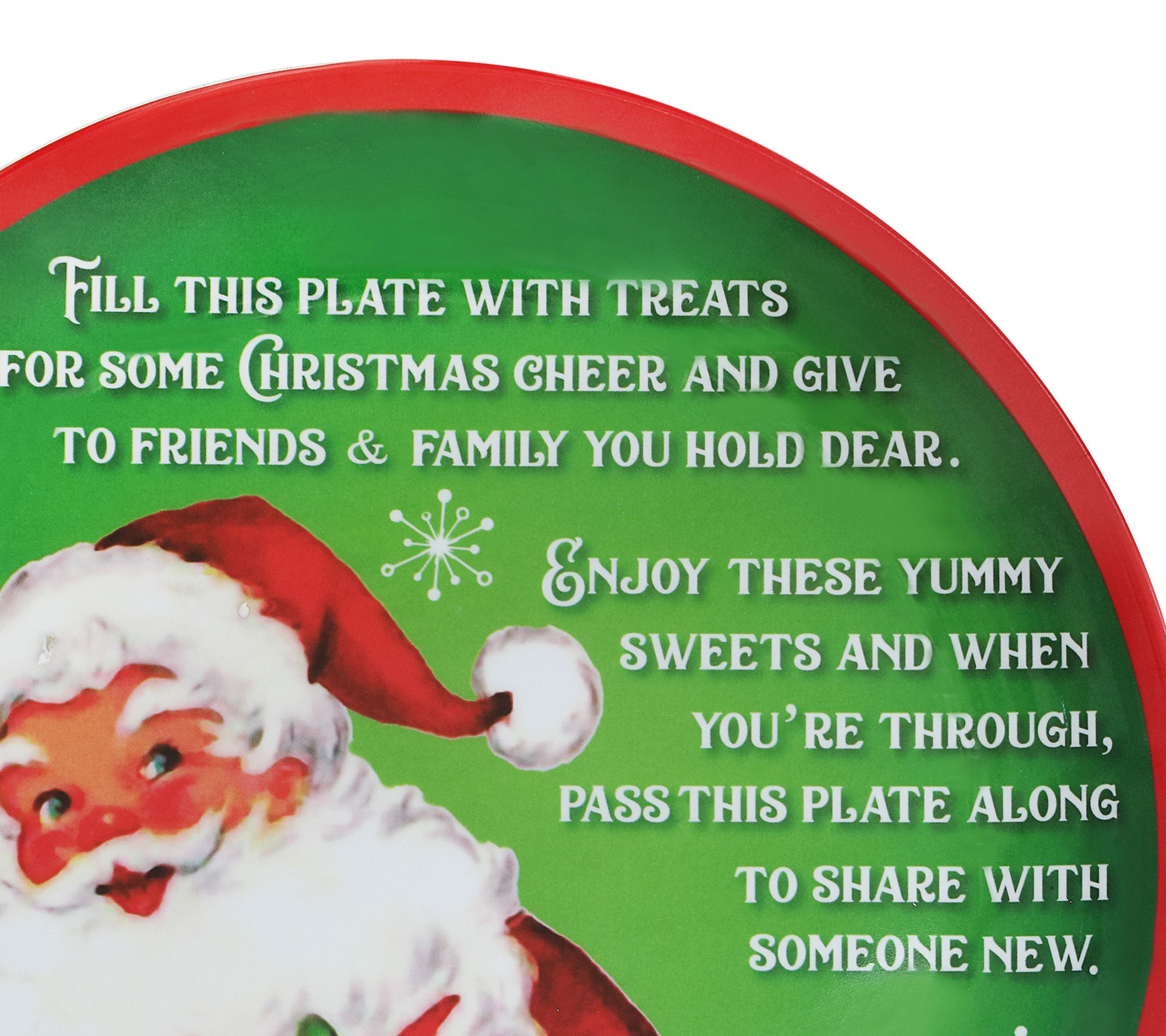 Holiday memories are made sweeter when you share treats with friends and family using this festive ceramic giving plate. The Santa motif adds joyful charm to your seasonal gatherings, encouraging everyone to embrace the spirit of sharing. Bring a touch of Christmas magic as you pass along homemade cookies or holiday goodies. From Mr. Christmas.