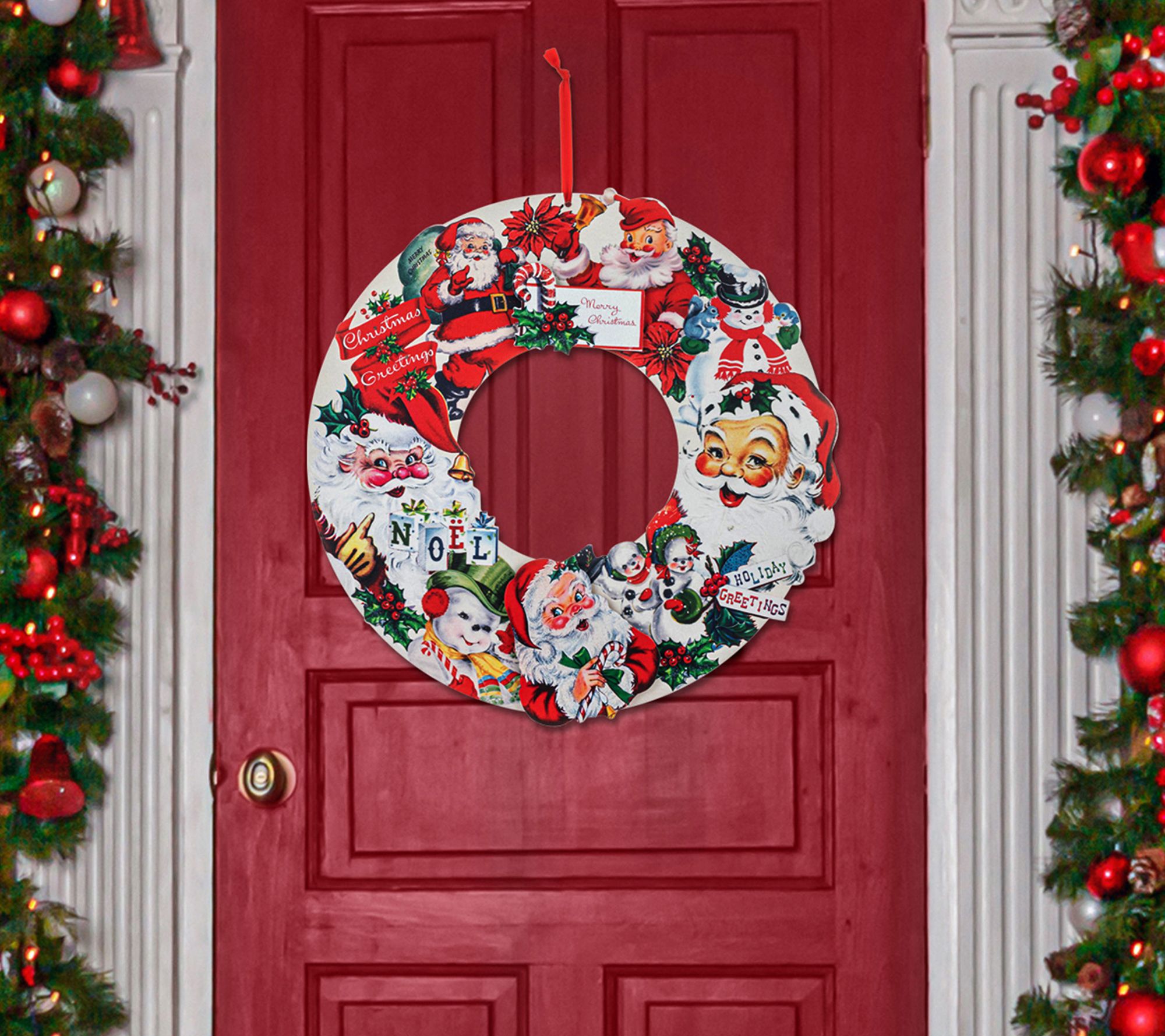 Bring vintage-inspired charm to your holiday decor when you hang this Santa wreath on your door or above your mantel. From Mr. Christmas.