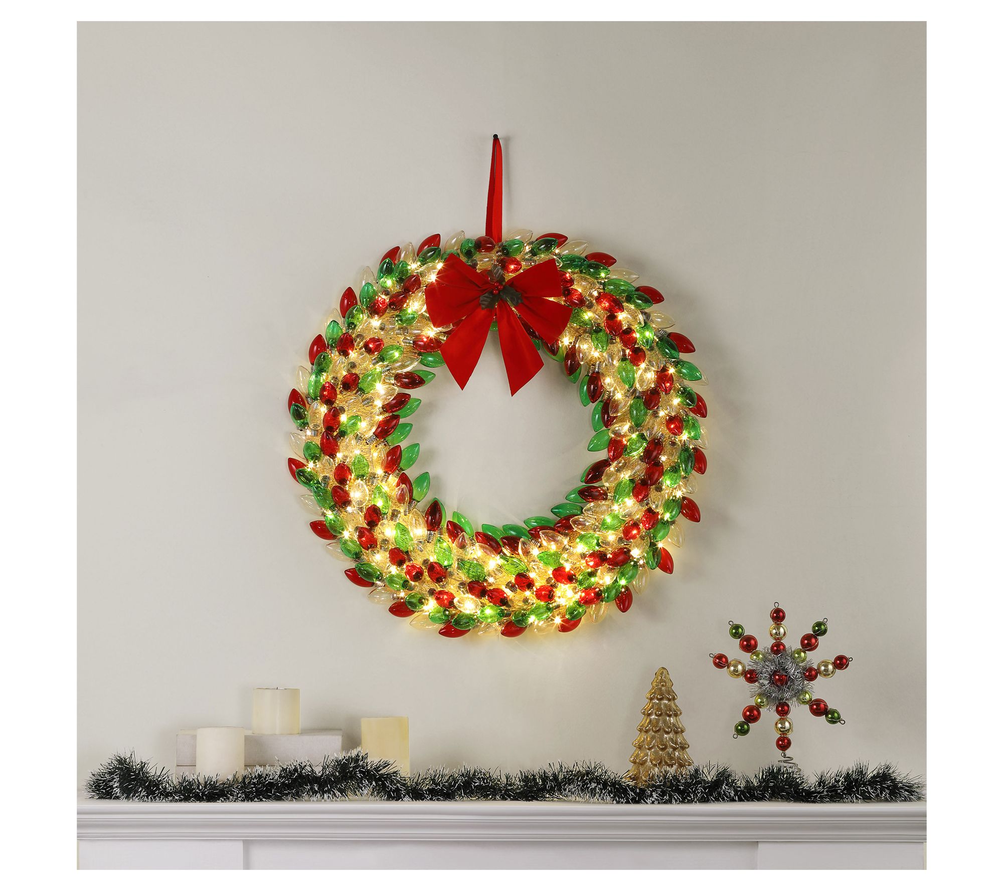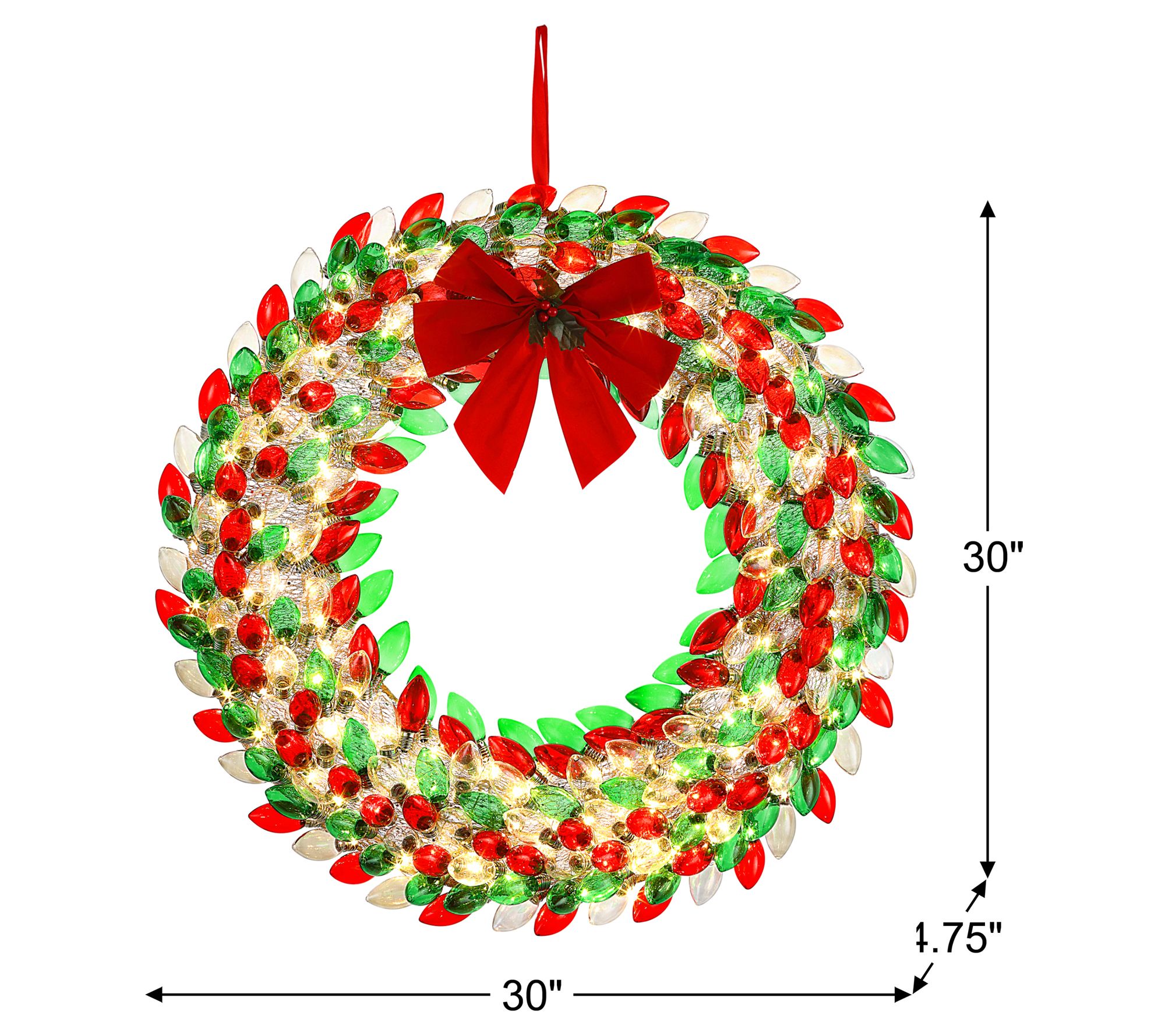 Mr. Christmas 30 in. Retro C9 Bulb Wreath - Redand Green