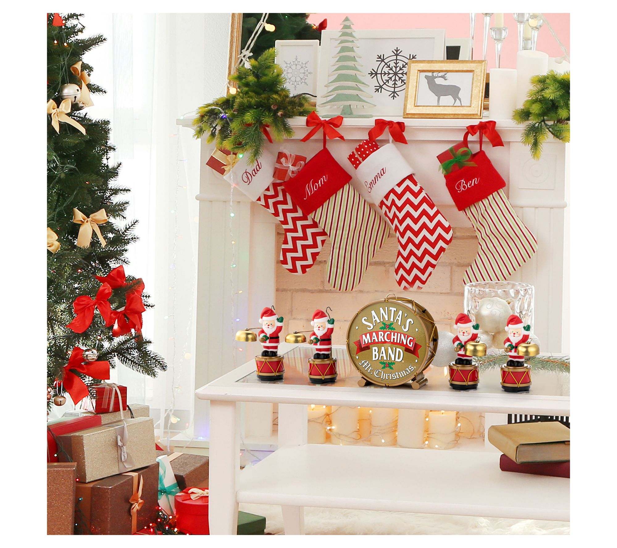 Holiday decorating has reached a crescendo with the Mr. Christmas 6" animated Santa's marching band. It hits all the right notes, adding a festive touch to your holiday decor as it plays 35 Christmas carols. From Mr. Christmas.