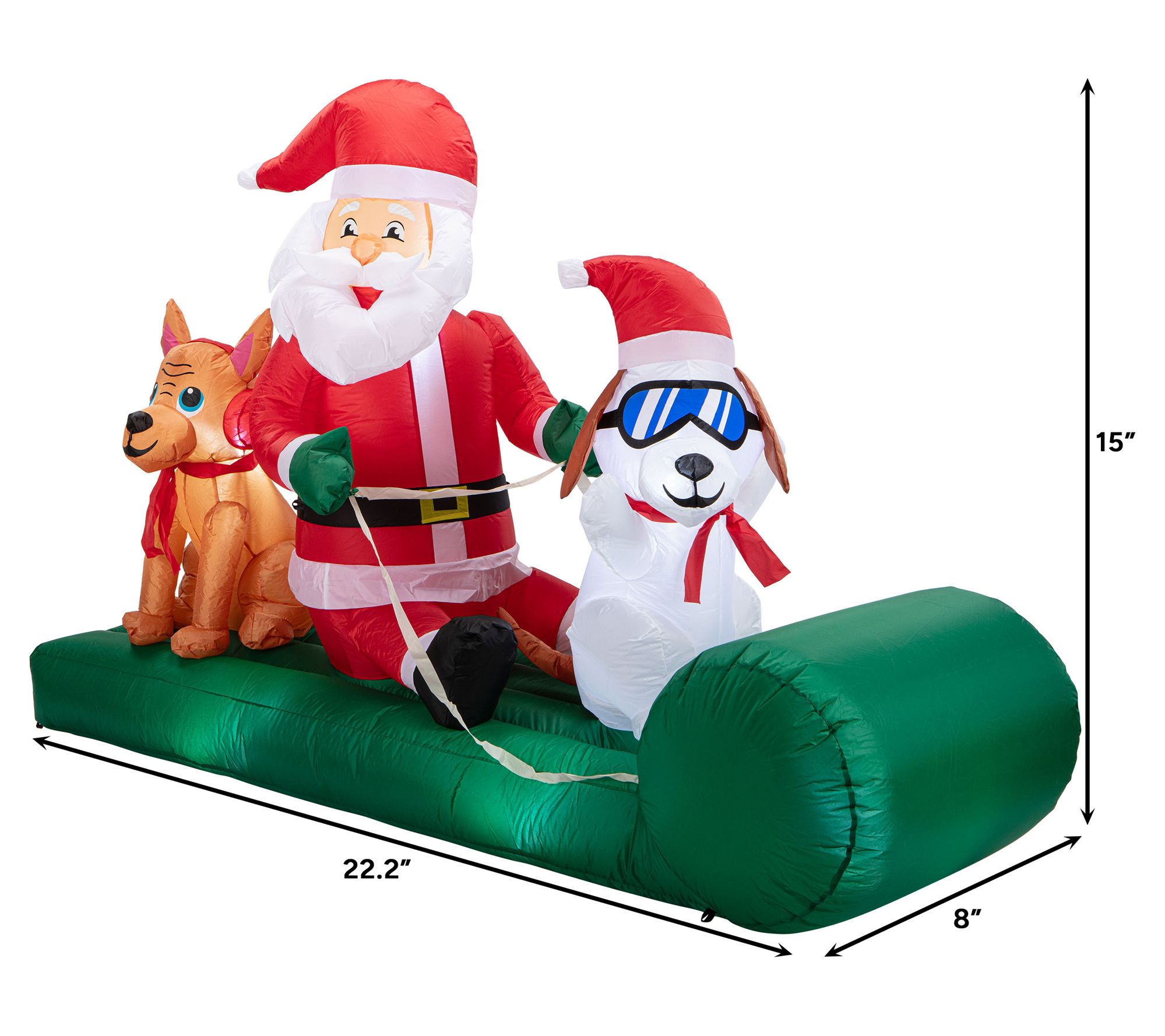 Transform your outdoor space into a magical holiday scene with this inflatable dog sled. This delightful decoration features a classic Santa design with two adorable dogs leading the way on his sled, creating an eye-catching addition to your holiday decor. The LED illumination ensures Santa and his merry little canine crew shine brightly, even on the darkest winter nights. From Mr. Christmas.