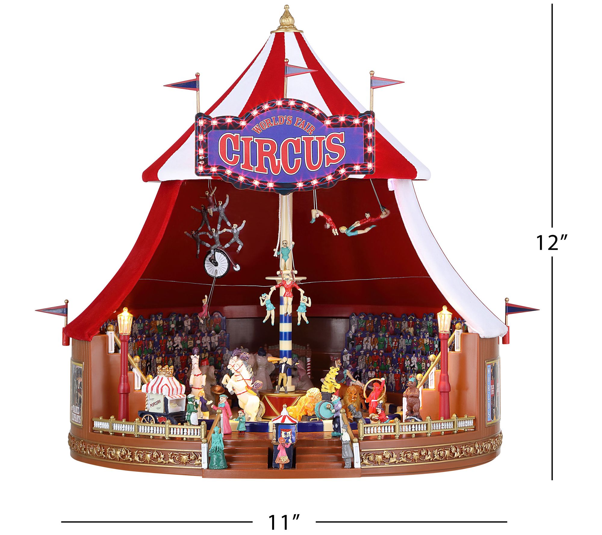 Step right up for the show of a lifetime! Capture the nostalgia and grandeur of a traditional circus right in the comfort of your own home. Featuring rotating figures, bright LED lights, and a variety of classic songs, this big top decoration brings fun and whimsy to your holiday display. From Mr. Christmas.