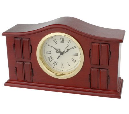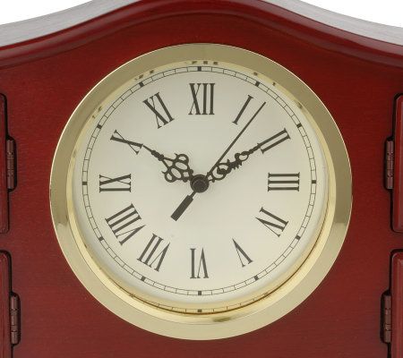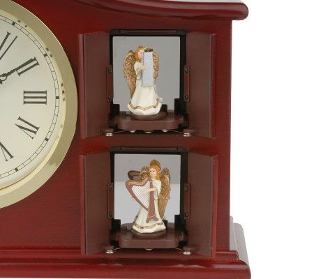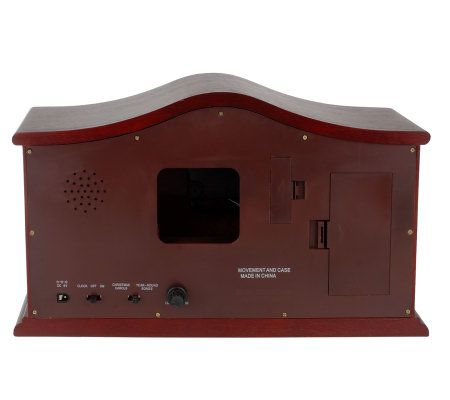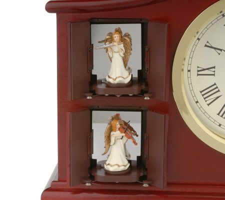 A symphony of surprises await. Hidden behind the doors on the front of this musical clock are four animated figures that spring to life as music plays. The figures move in harmonic sequence whether you set the music to play continuously or on the hour. Enjoy the sounds of the holiday season with cherished Christmas carols. But don't put the box away when the holidays are over--it also plays an assortment of popular tunes. Instrumental tones interpret these beloved carols and tunes in splendid style.