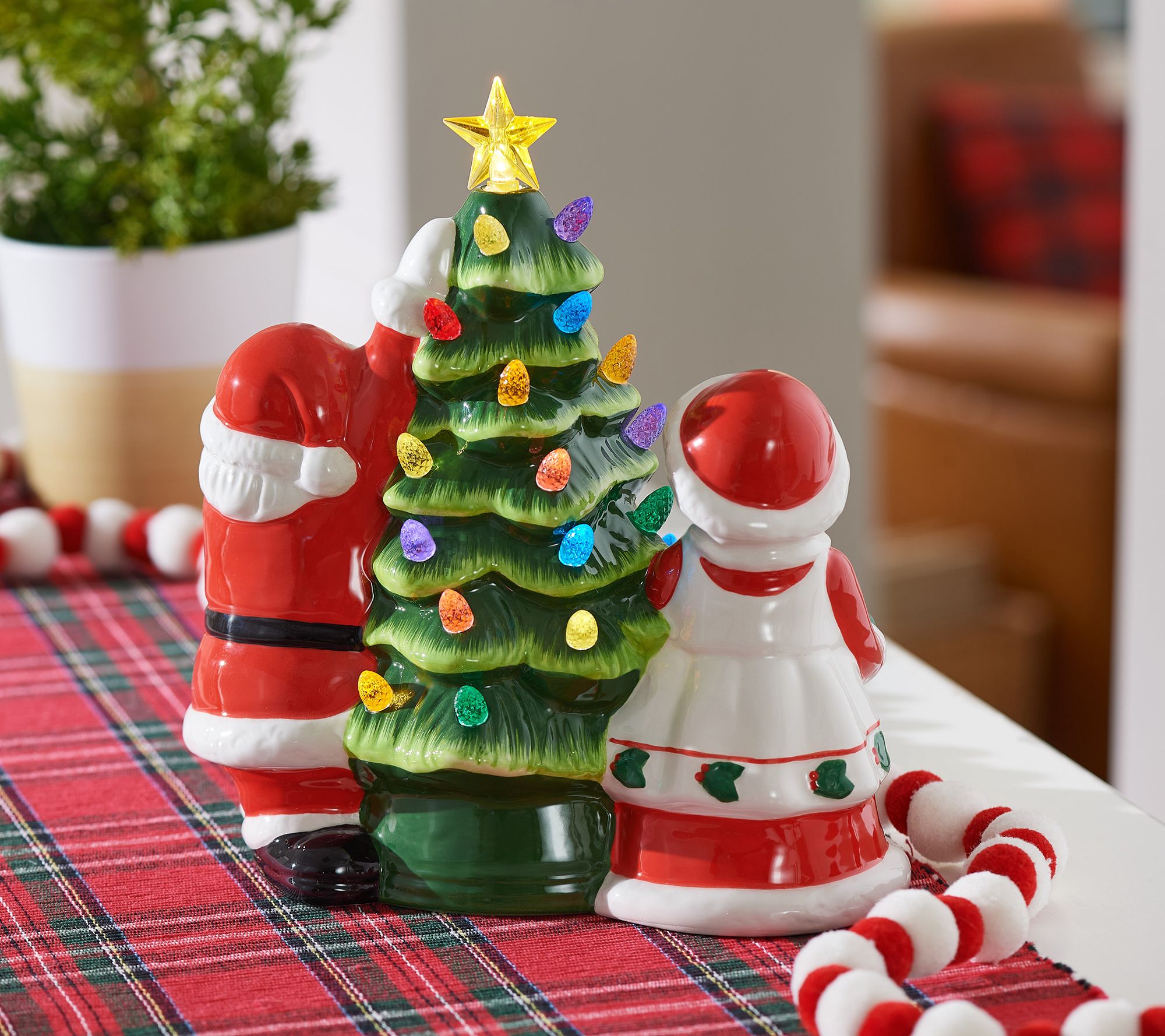Holiday decor doesn't get much cuter than this ceramic duo gathered around a colorful illuminated tree. From Mr. Christmas.