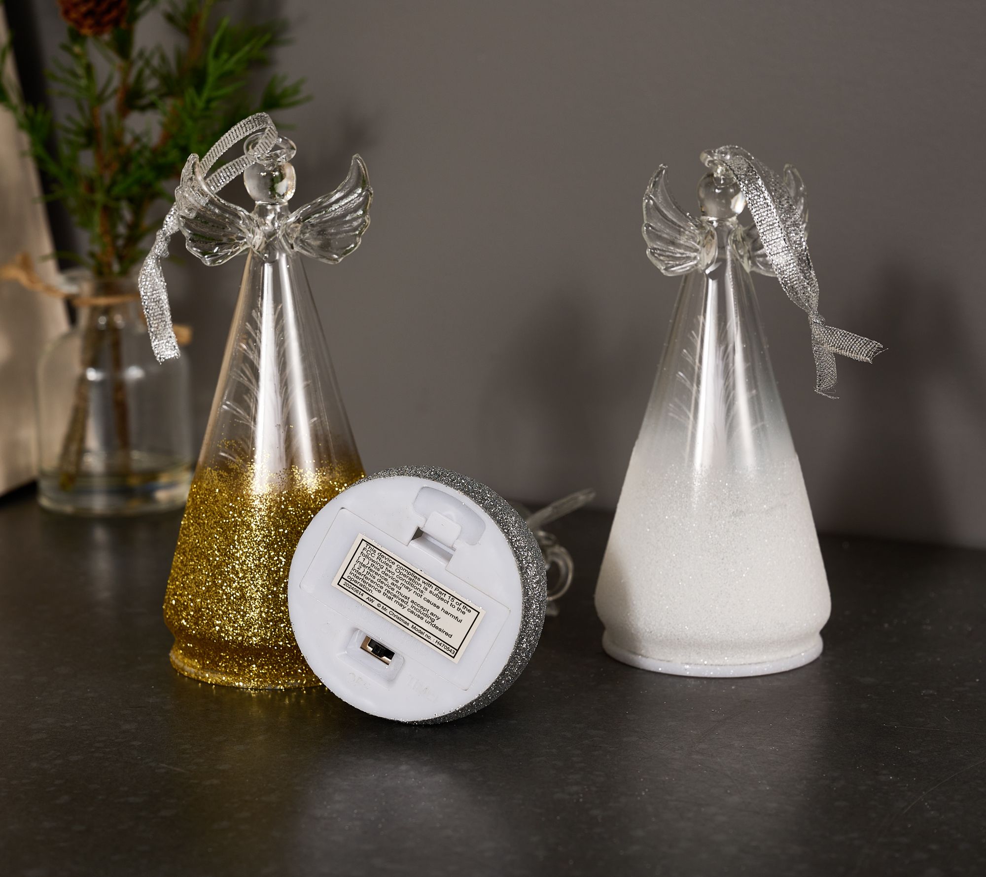 • Approximate measurements: Tree 2.7"W x 2.7"D x 6.3"H; Angel 2.7"W x 2.7"D x 5.7"H