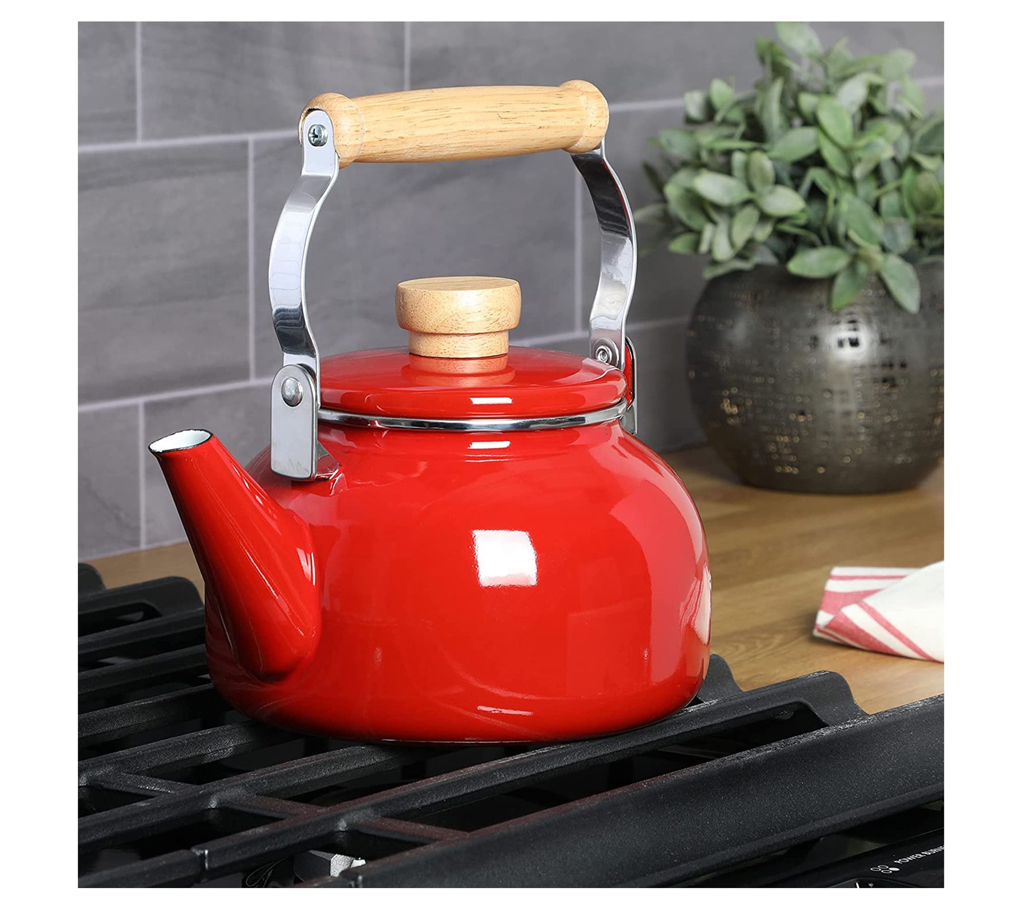 Offering a bright red splash of color and a convenient fold-down handle, the Quentin kettle is the perfect way to make your favorite hot drinks and more. From Mr. Coffee.