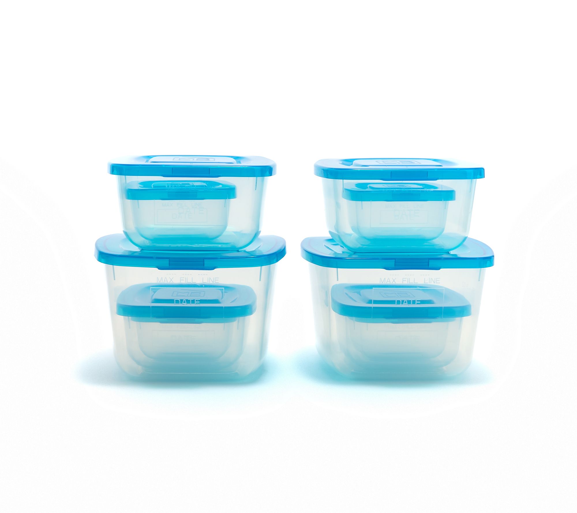 • Includes four 4-oz containers, two 8-oz containers, two 16-oz containers, two 32-oz containers, all with attached lids