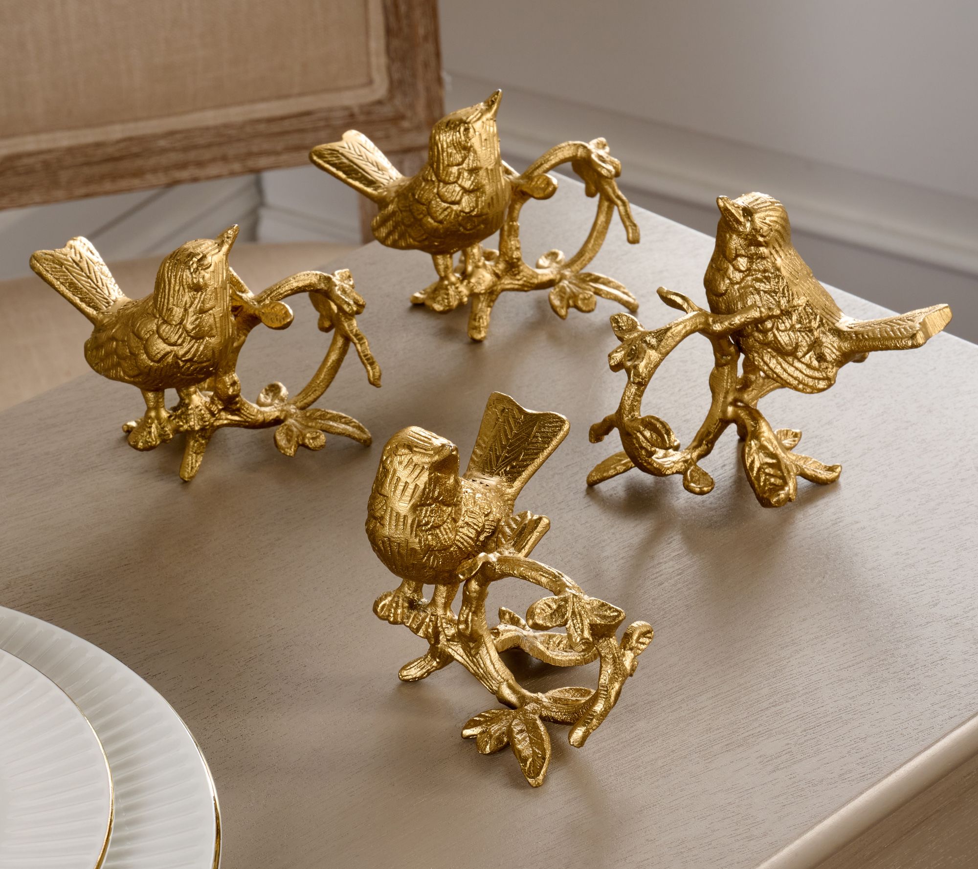 Bring a touch of sophistication to your dining table with this set of elegant napkin rings. Whether you're hosting a formal dinner party or enjoying an everyday meal, the textured lovebird design makes any occasion more special. From Mrs. H by Dee Hilfiger.