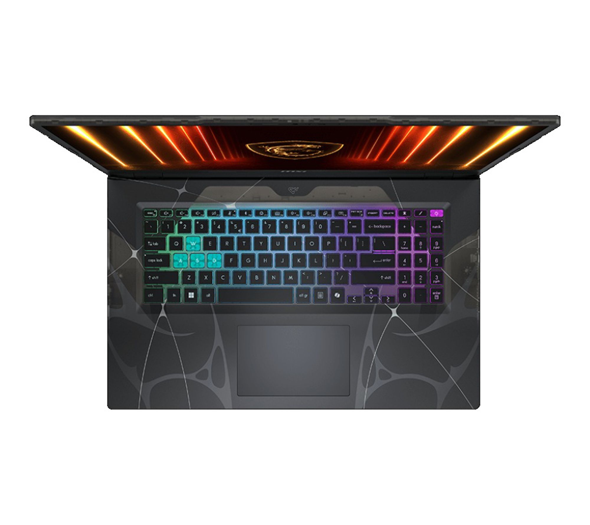 Translucent black chassis accented with a 4-zone RGB anti-ghosting keyboard (99 keys)