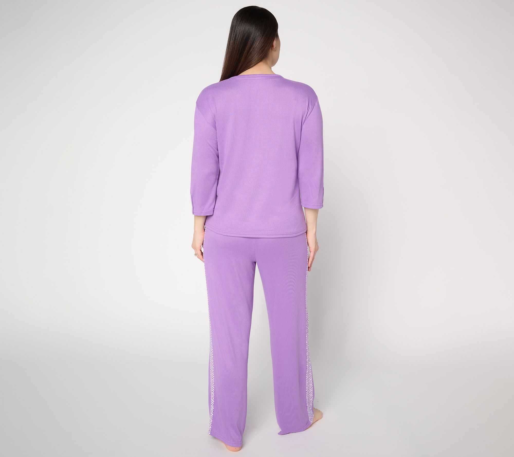 Ready to lounge? Whether you're sipping morning coffee or winding down in the evening, this knit set embraces the moment so much better than overly tight clothes or worn-out sweats. Sporty details on the henley top and straight-leg pants make casual days at home or relaxed get-togethers feel a little more put-together. From MUK LUKS.