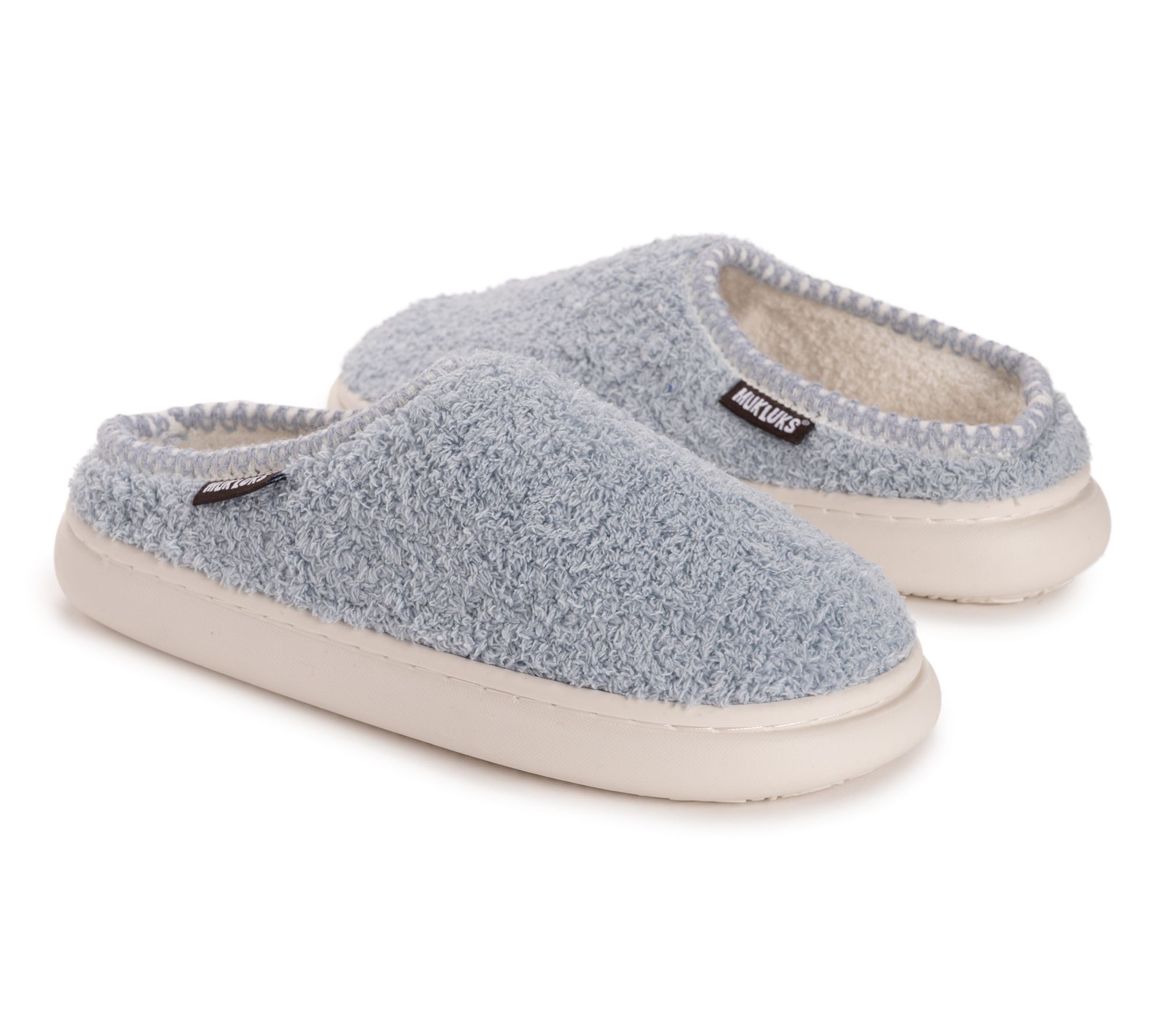 Meet the ultimate cozy companion for your feet! With memory foam cushioning and a warm lining, these terry-like slippers are a hug for your toes. But wait, there's more! Featuring a bubble outsole for a touch of bounce, these slippers are perfect for padding around the house or popping outside to pick up the paper. From MUK LUKS.