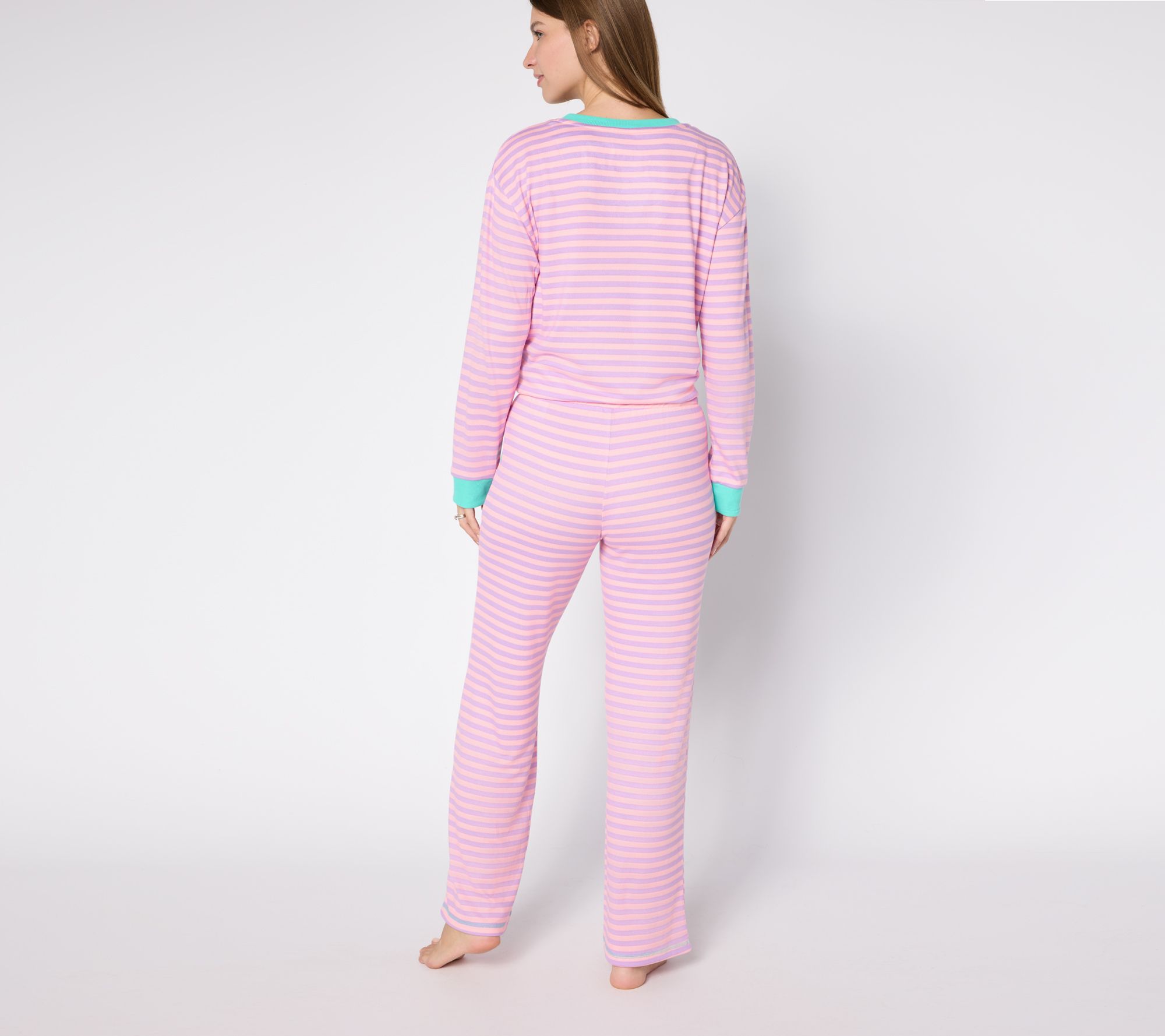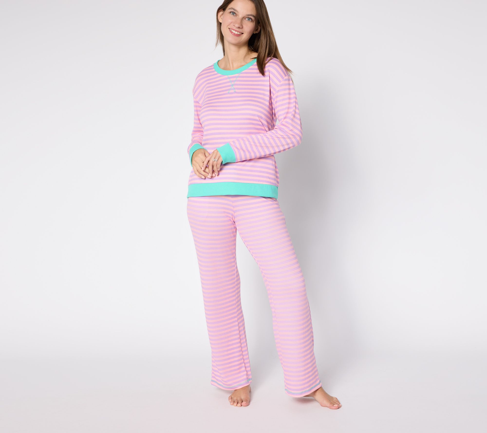 Relax and reset in this striped knit lounge set, designed in luscious Butter Knit that moves with you from your first cup of coffee to late-night reading. The long-sleeve top features a classic crew neckline, while the pull-on pants offer a comfy straight-leg silhouette and an easy elastic waistband. From MUK LUKS.
