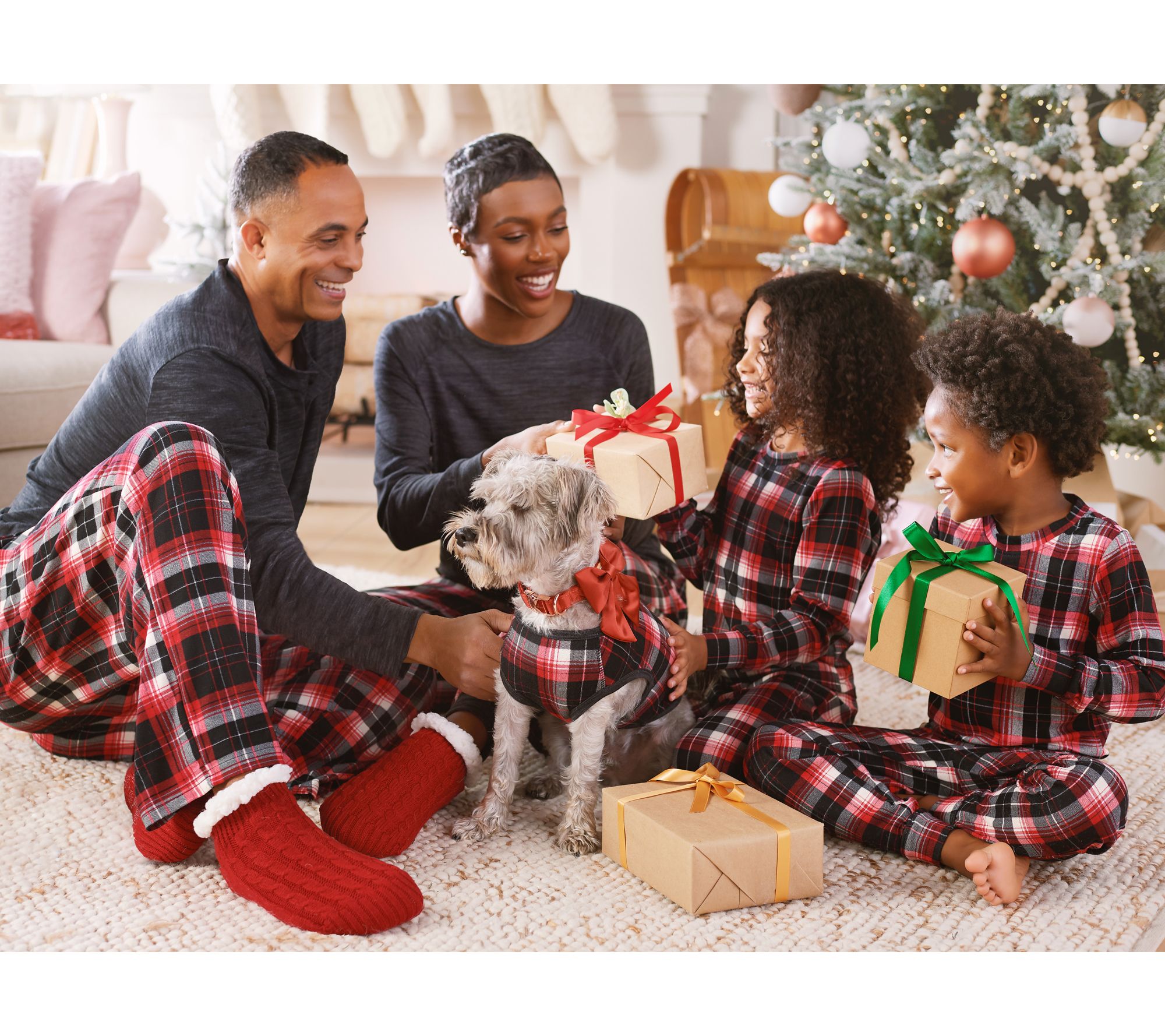 This year's holiday card? Your cutest one yet, thanks to these adorable matching pajamas for the whole crew. (There's even a onesie option for your furry family member -- 'cause you can't forget them!)
