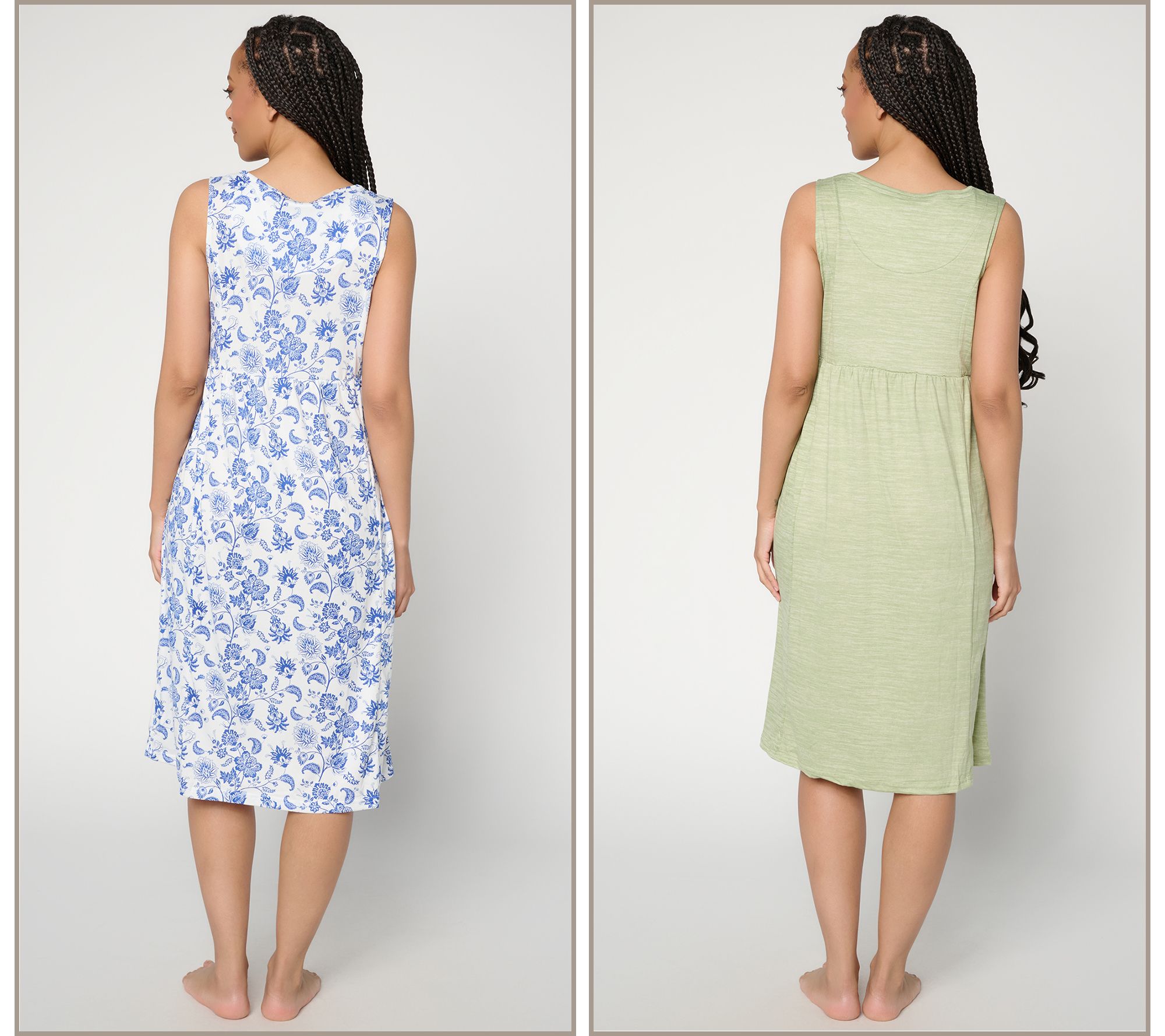 Includes heathered dress and printed dress