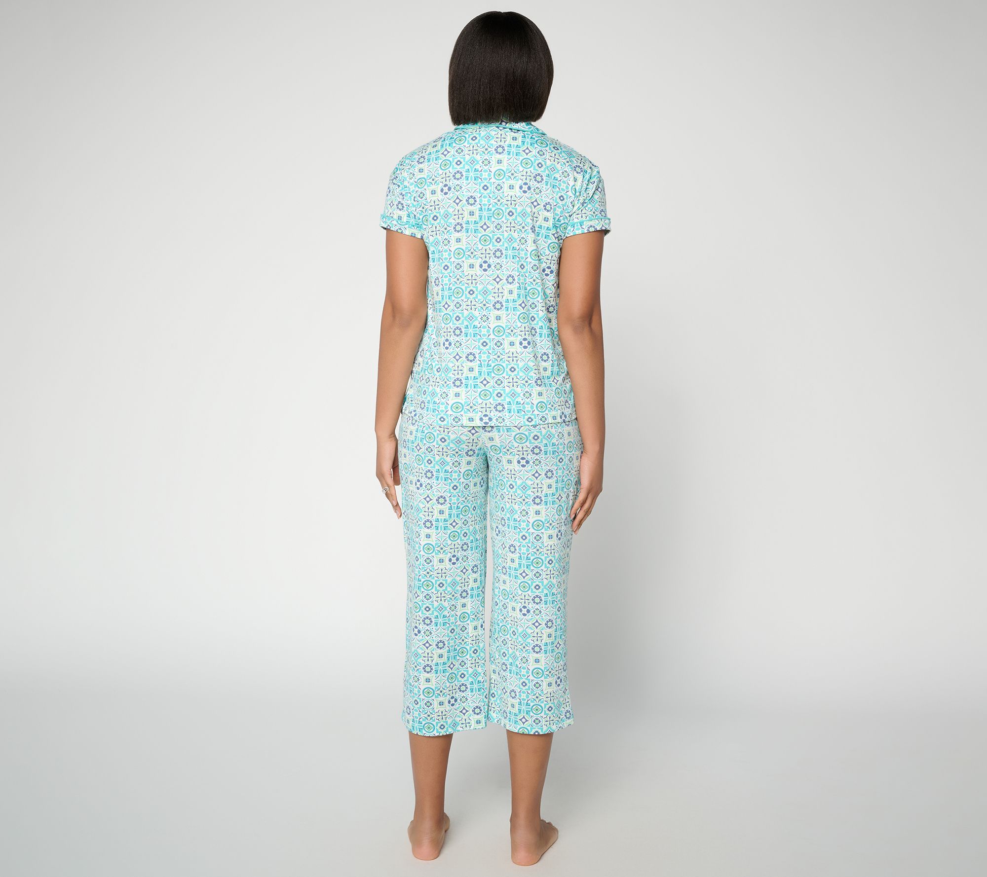 Ease into a cozy evening routine with this pajama set, crafted for moments that call for relaxation. The knit shawl-collar top and cropped straight-leg pants offer comfort and style for unwinding or enjoying a lazy morning at home. From MUK LUKS.