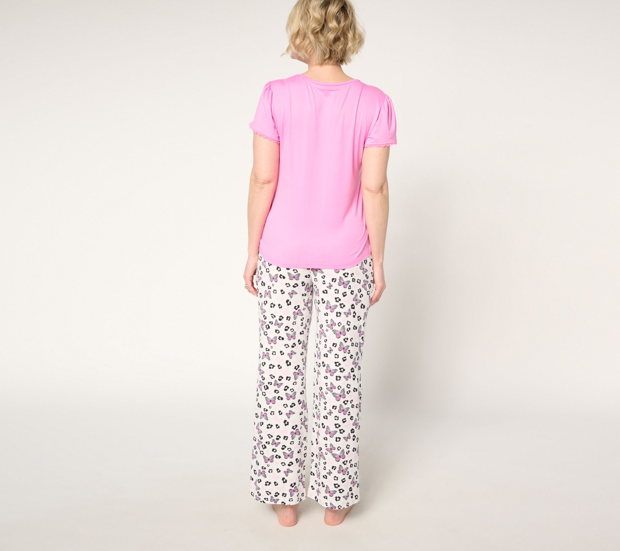 Picture yourself unwinding after a busy day in ultimate comfort with this MUK LUKS Cloud Knit short sleeve and pants pajama set. The solid top pairs effortlessly with the playful print pants (complete with handy pockets!) making these your go-to PJs for those cozy nights in. From MUK LUKS.