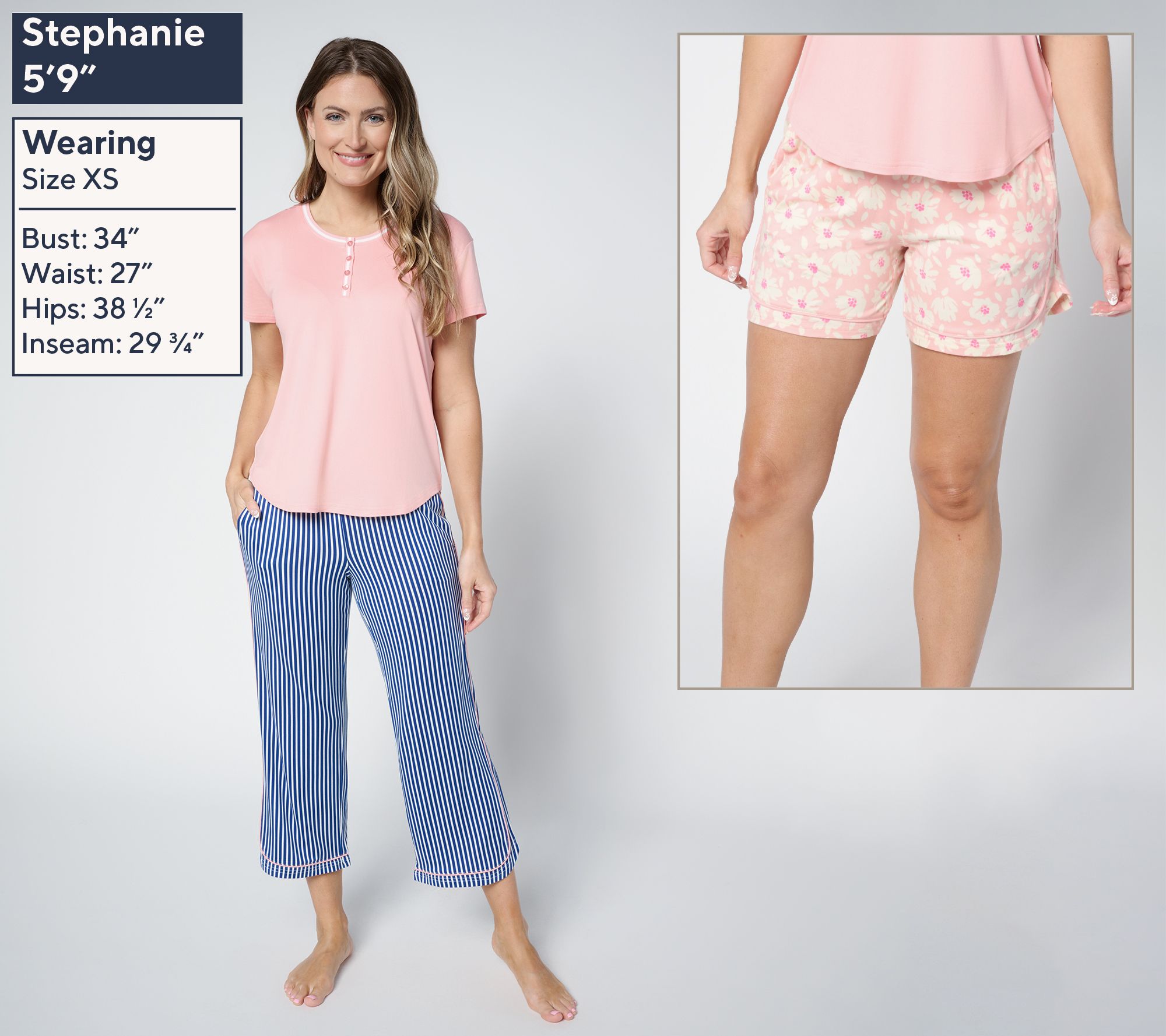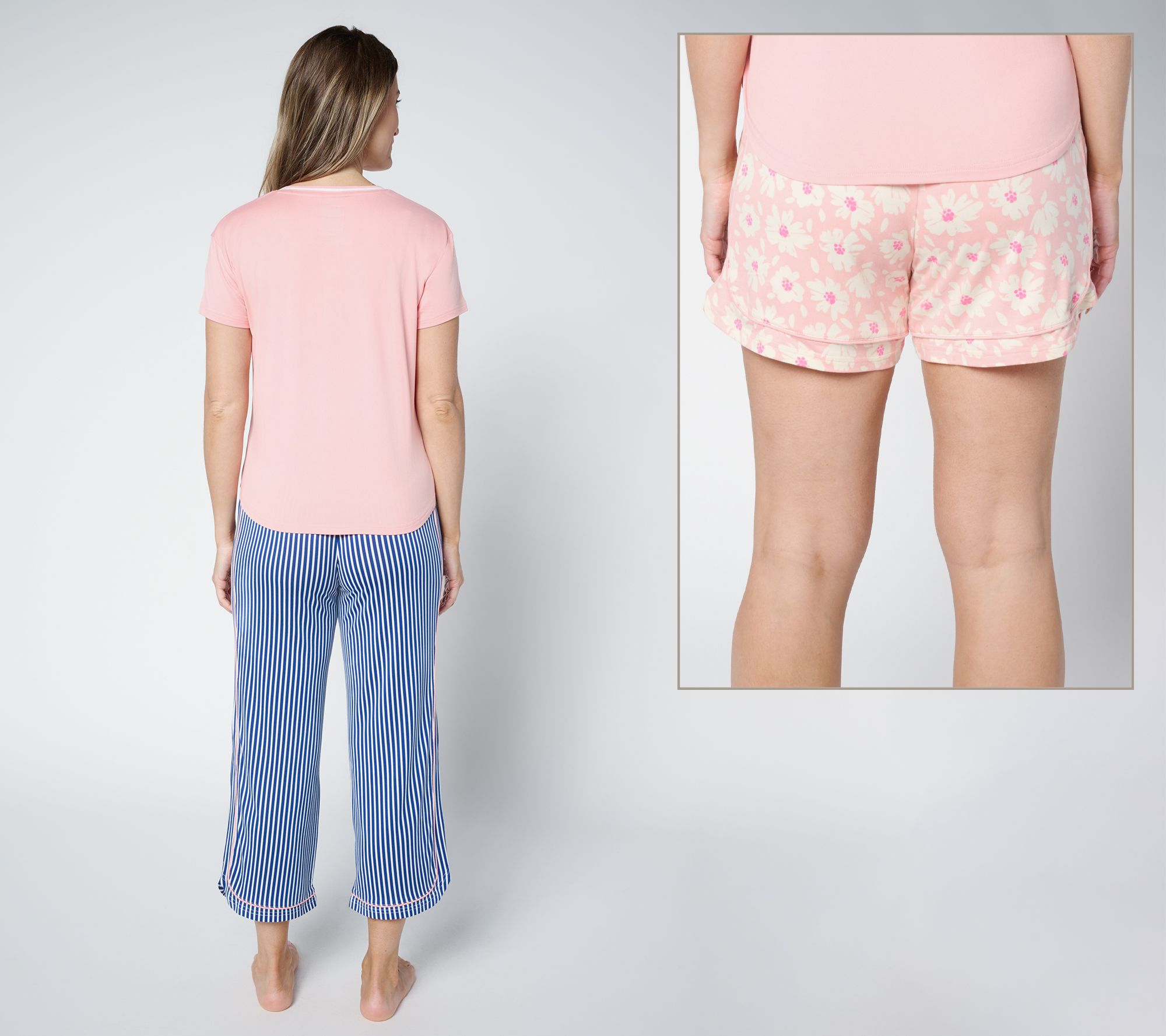 Includes tee, shorts, and capri pants