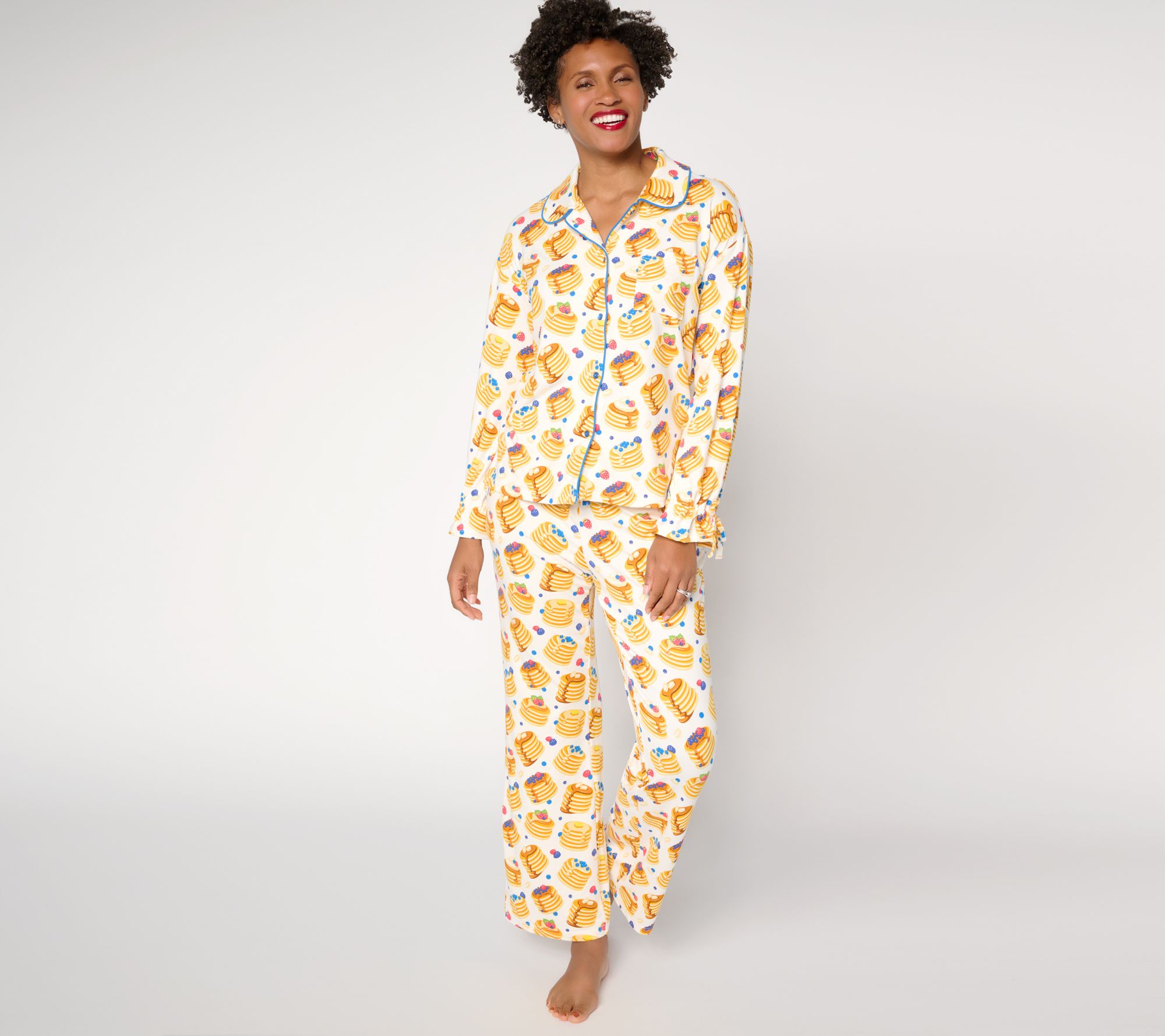 Even sweeter dreams. This Dream Cloud PJ set is a win for those of us who crave cozy softness and alll the festive things (or breakfast things). Slip into the classic button-front style for movie marathons or mornings spent spilling the tea with your crew. From MUK LUKS.