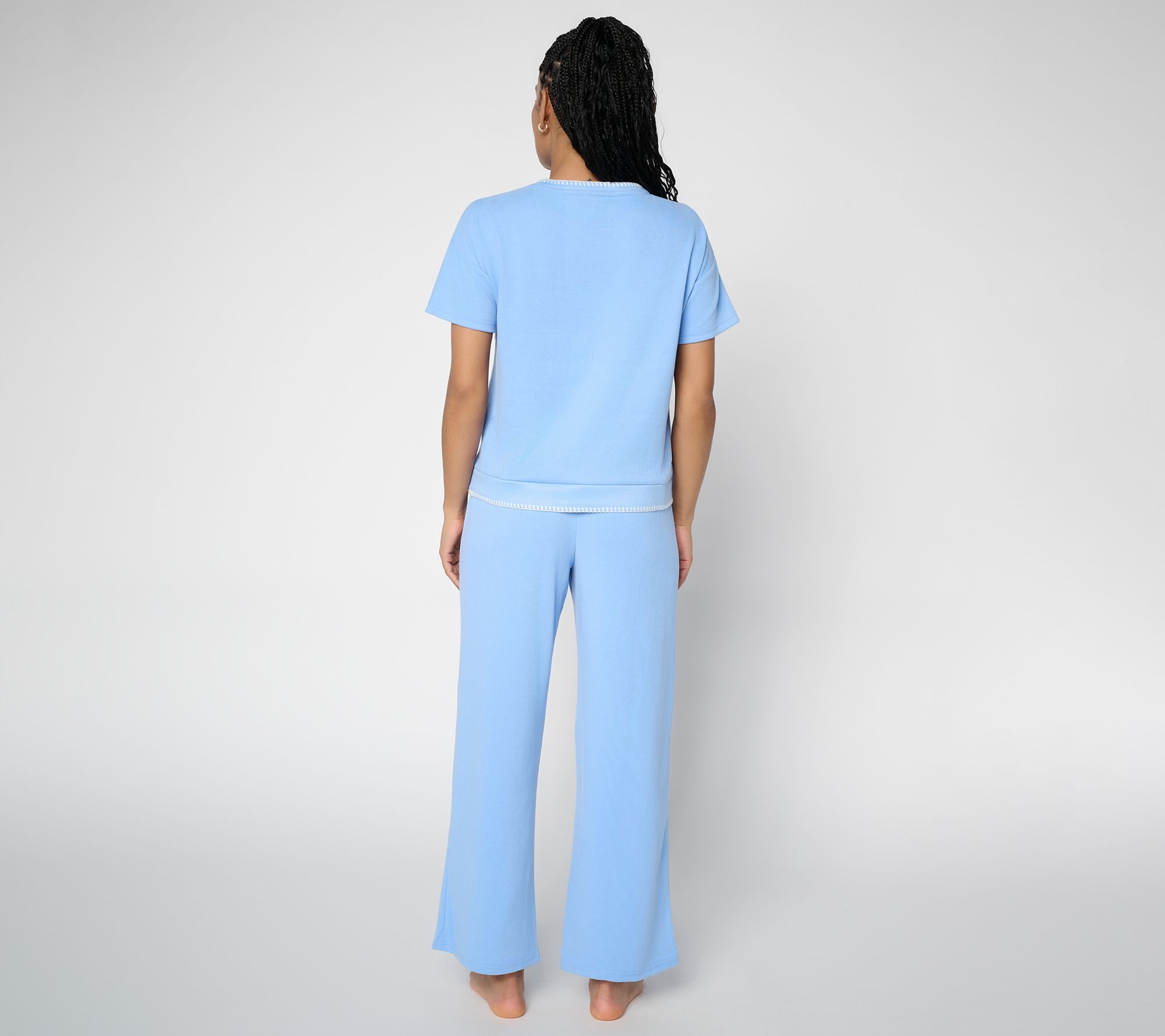 Settle in for movie marathons or leisurely mornings in this coziest-ever lounge set, featuring a drop-shoulder tee and straight-leg pants. Soft knit fabric with a beautiful balance of stretch and fresh whipstitch detailing brings elevated style to relaxation, while the elastic waistband creates all-day comfort for binge-watching or afternoon catnaps. From MUK LUKS.