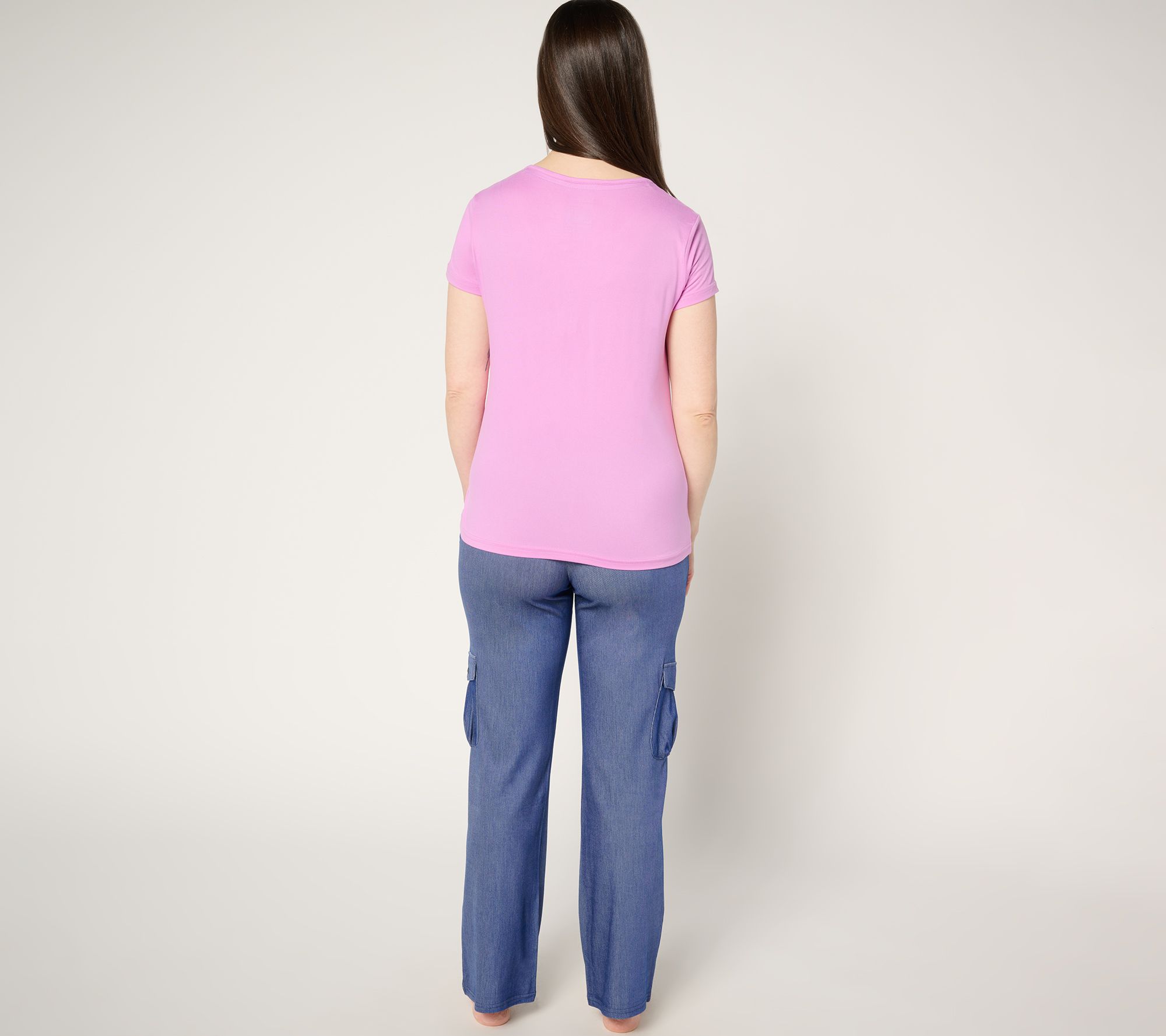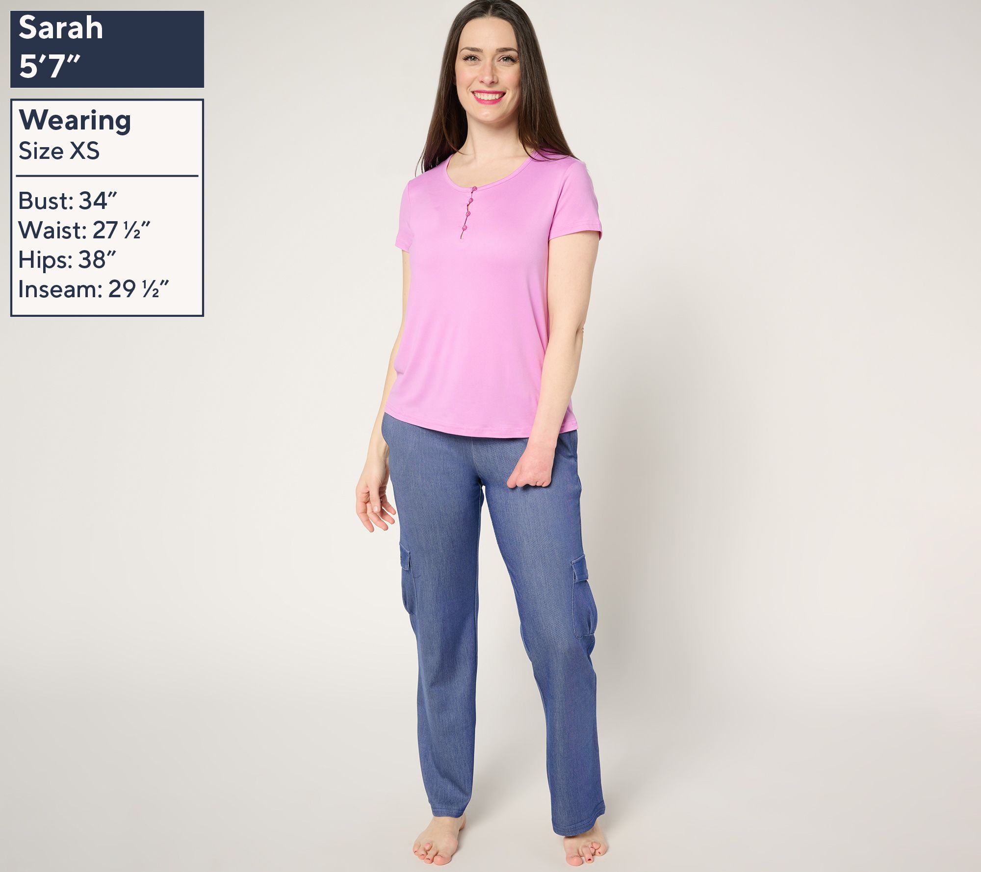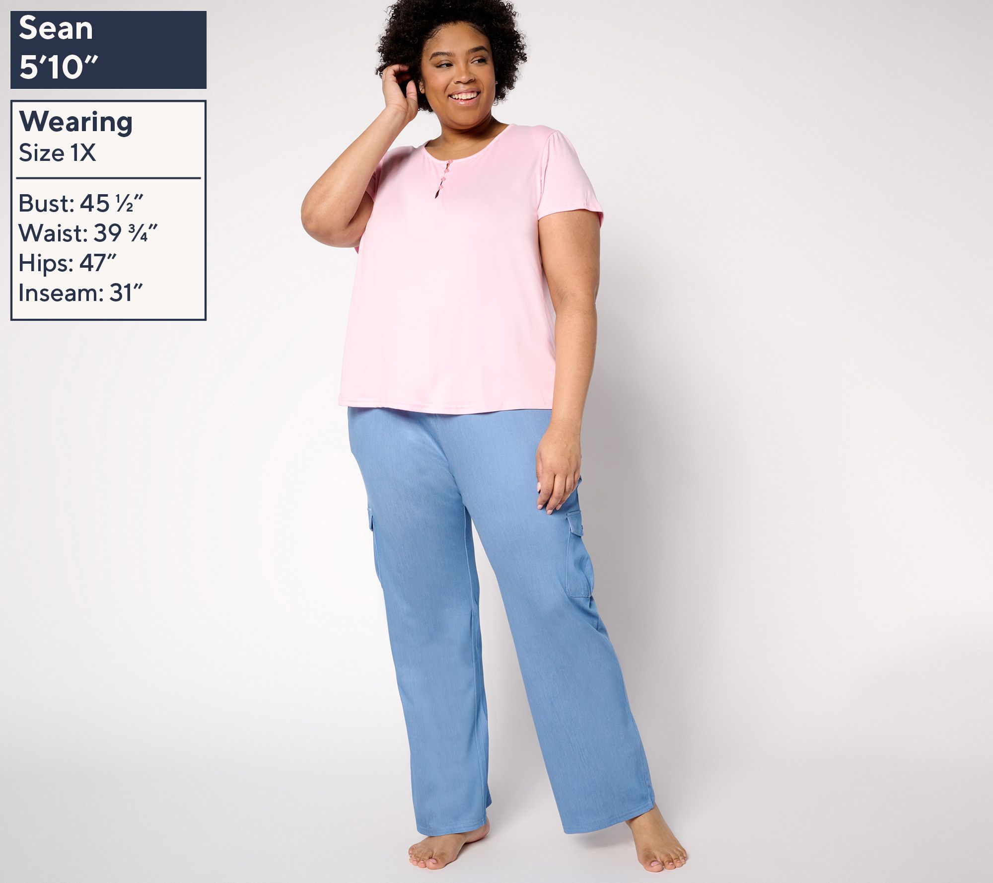 Upgrade your lounge attire with the MUK LUKS faux denim cargo pant and cloud knit tee lounge set. Whether you need a cozy outfit for a lazy day at home or a laid-back look for running errands, this coordinated set has you covered. From MUK LUKS.