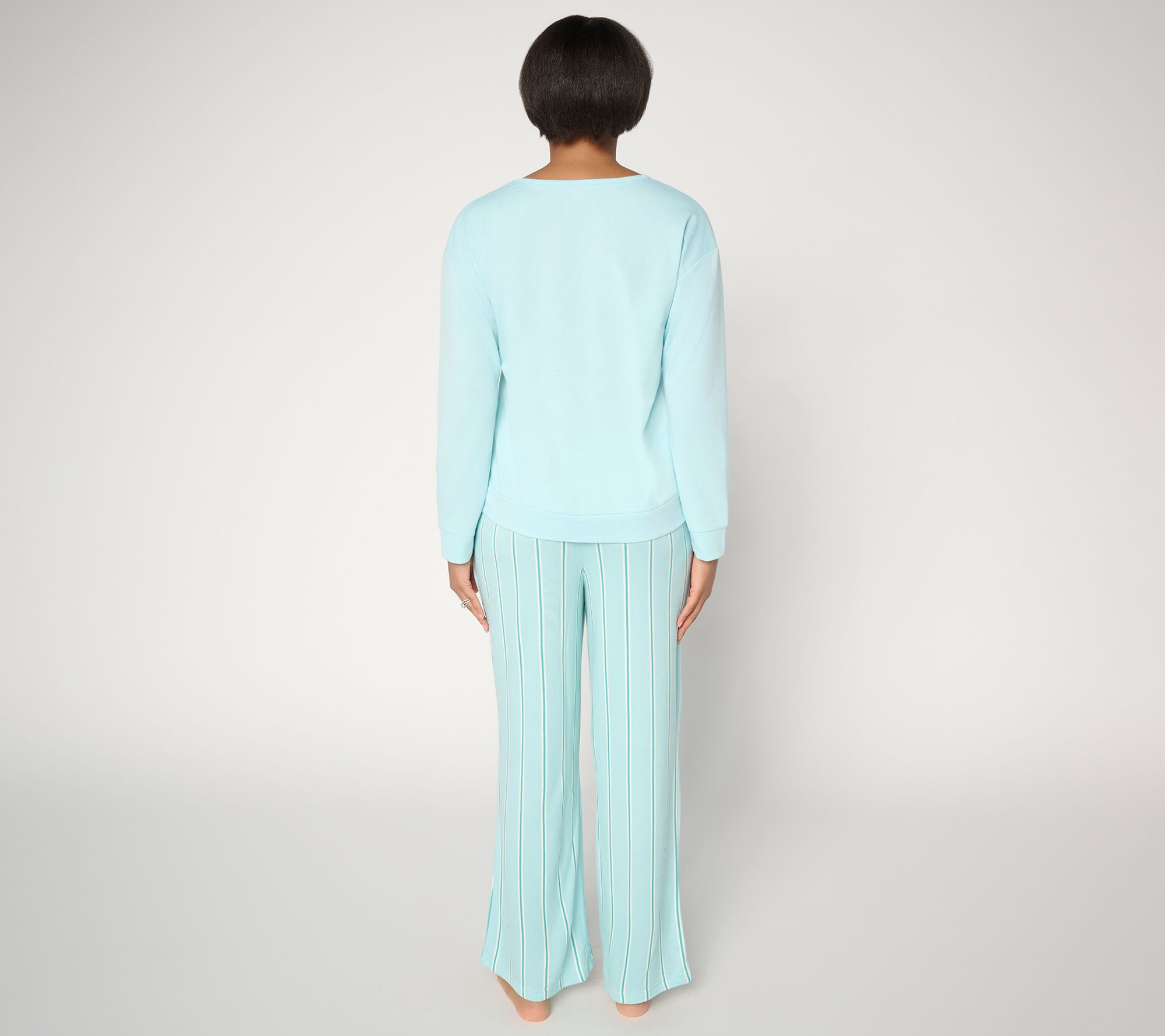 Life's too short for scratchy PJs. Slip into this soft knit lounge set and let the day melt away. Whether you're savoring a slow morning with coffee in hand or winding down with hot tea and your favorite binge-worthy series, this duo is made to soften every moment. The French terry and Butterknit fabric feels just right, while the pull-on flared-leg pants give you that easy, breezy comfort you deserve. It's relaxation, reimagined -- because you've earned every moment. From MUK LUKS.