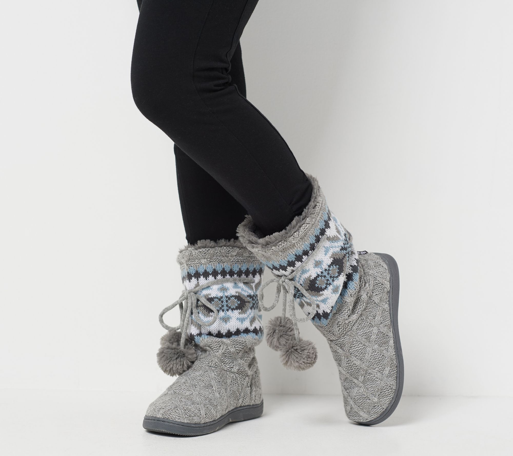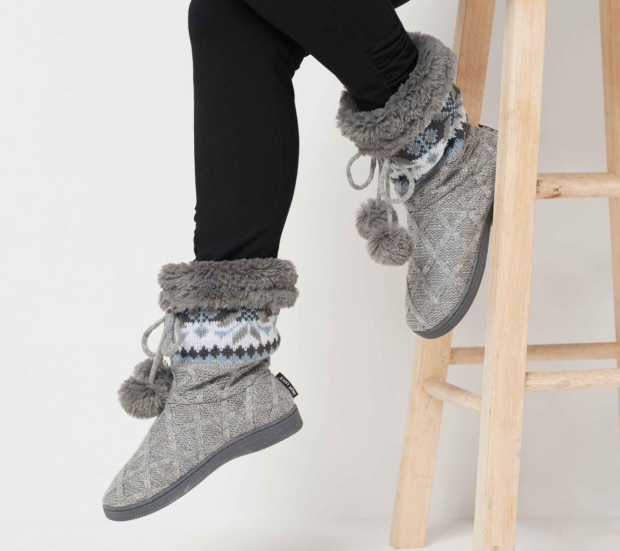 MUK LUKS Gracie Tall Slippers Boot with Faux Fur Poms