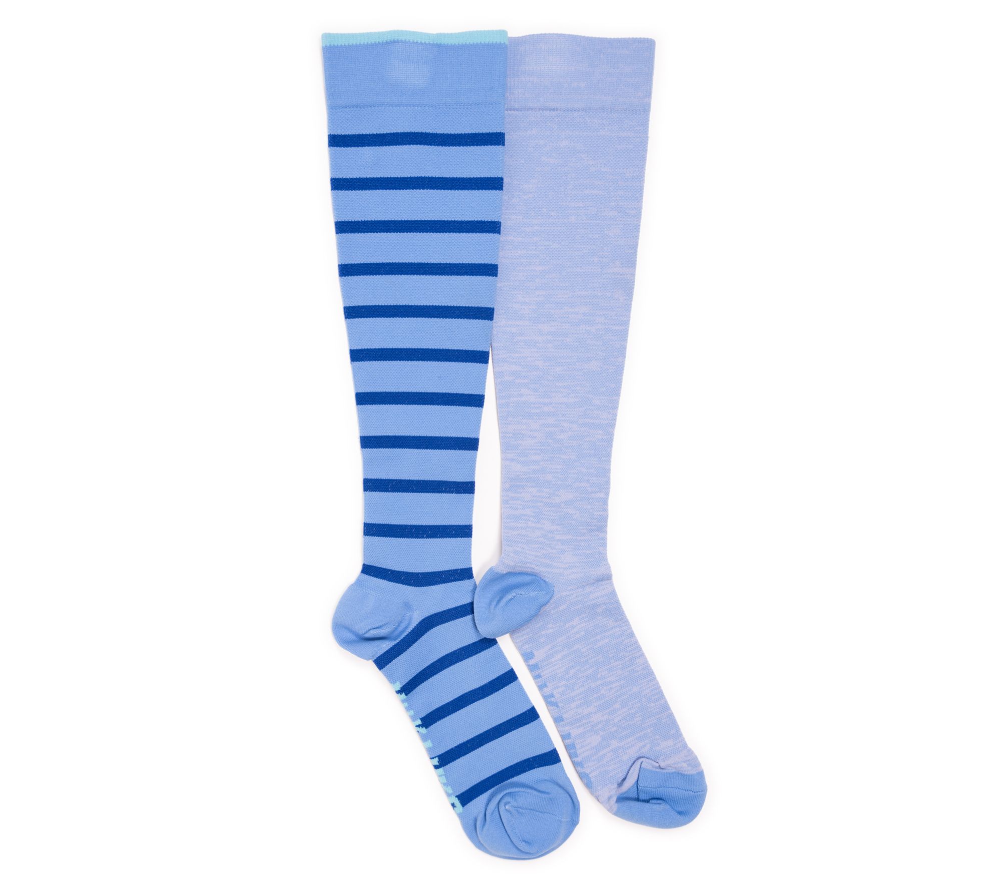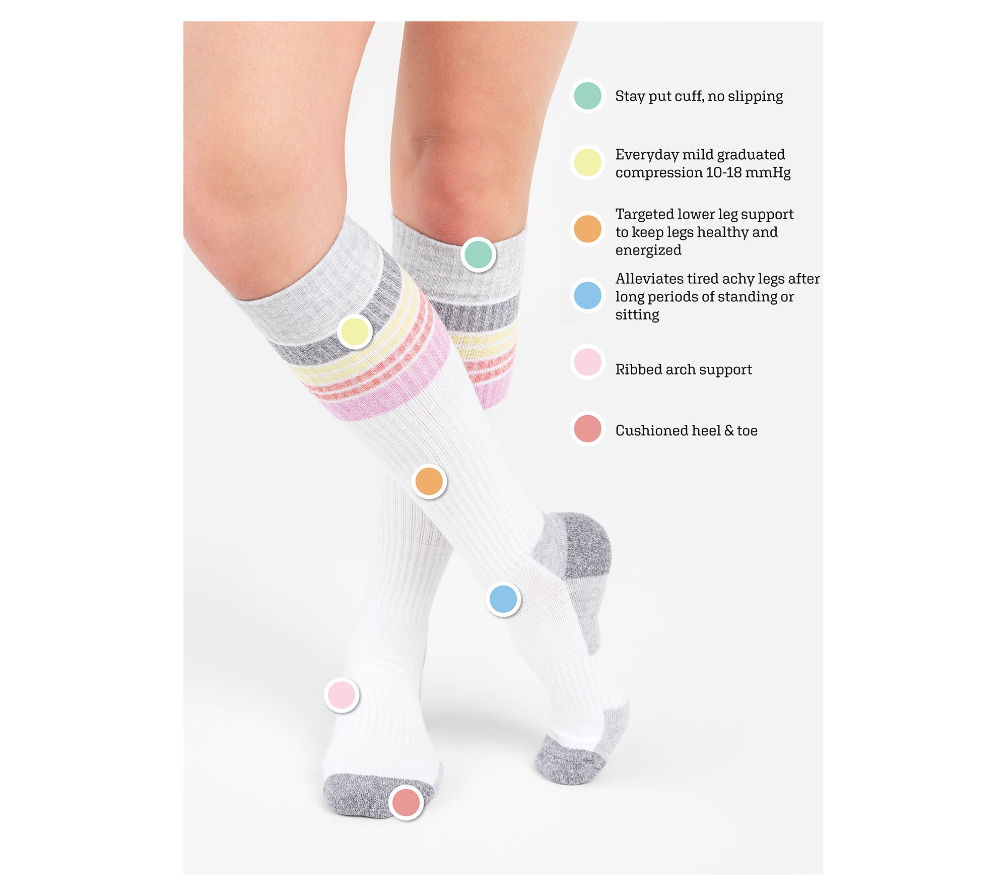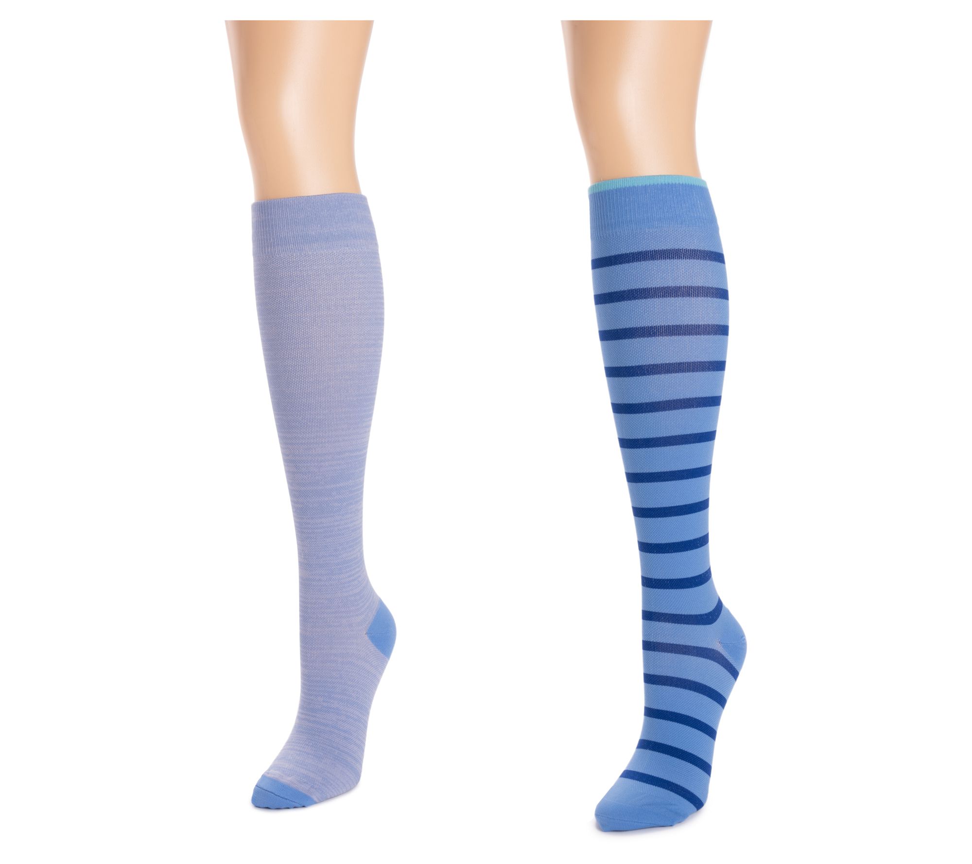 Say hello to style and comfort with these knee-high compression socks, featuring graduated compression to help provide temporary relief from minor muscle aches, pains, and muscle soreness. The stretchy fabric and comfort band offer a snug, comfy fit that lasts from morning to night. From MUK LUKS.