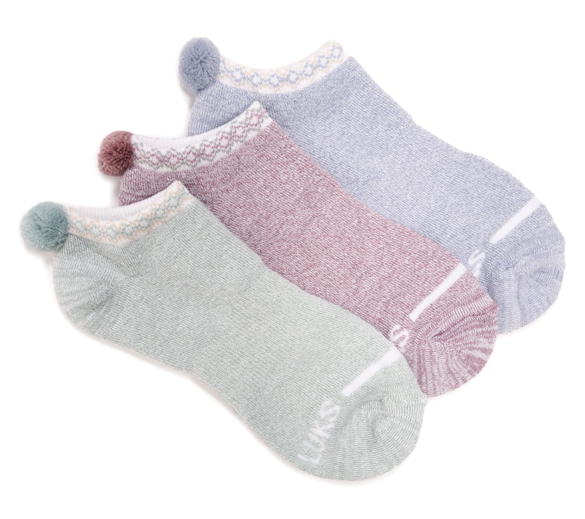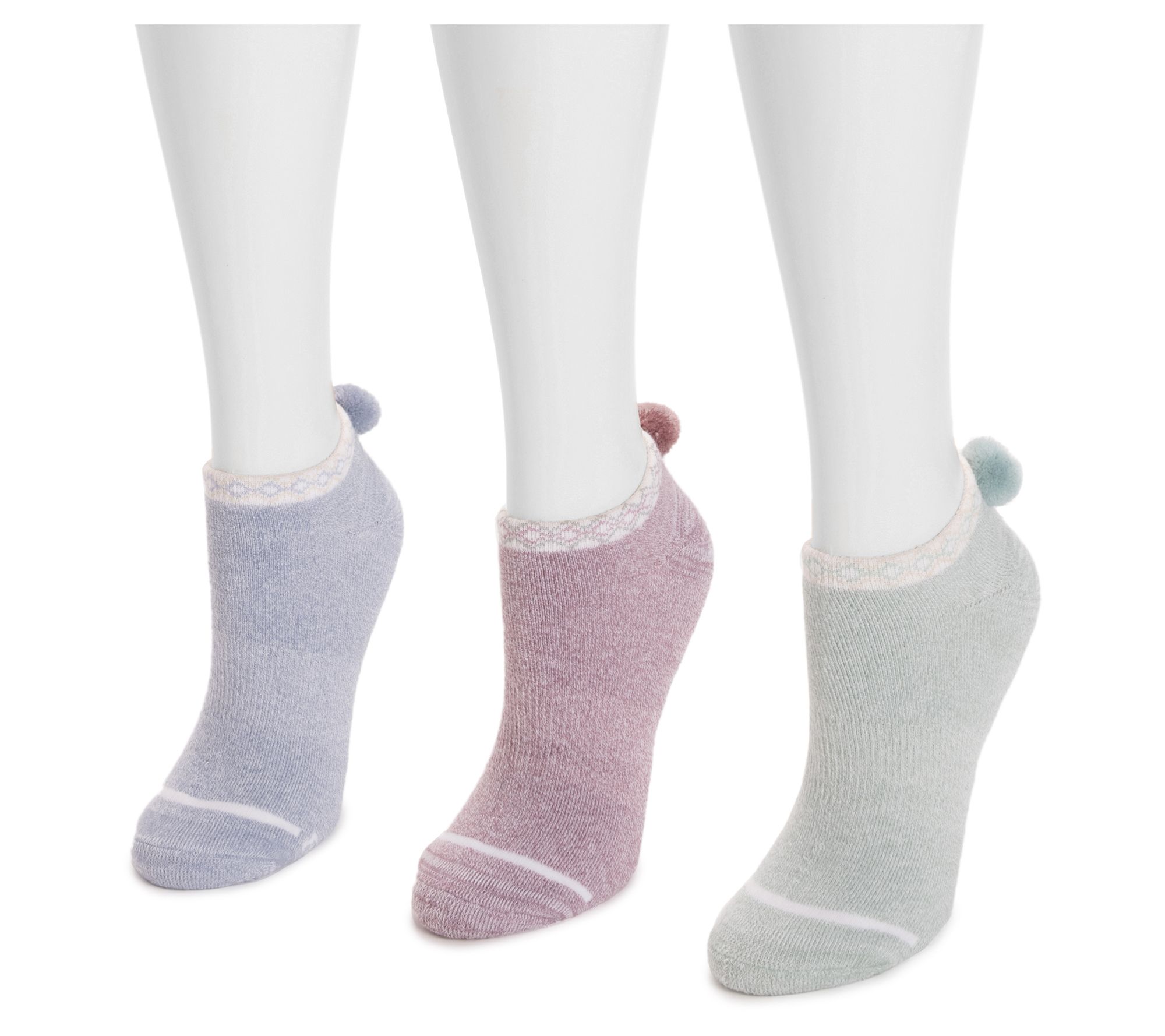 MUK LUKS Set of 3 Dream Step Low-Cut Socks withPom Detail