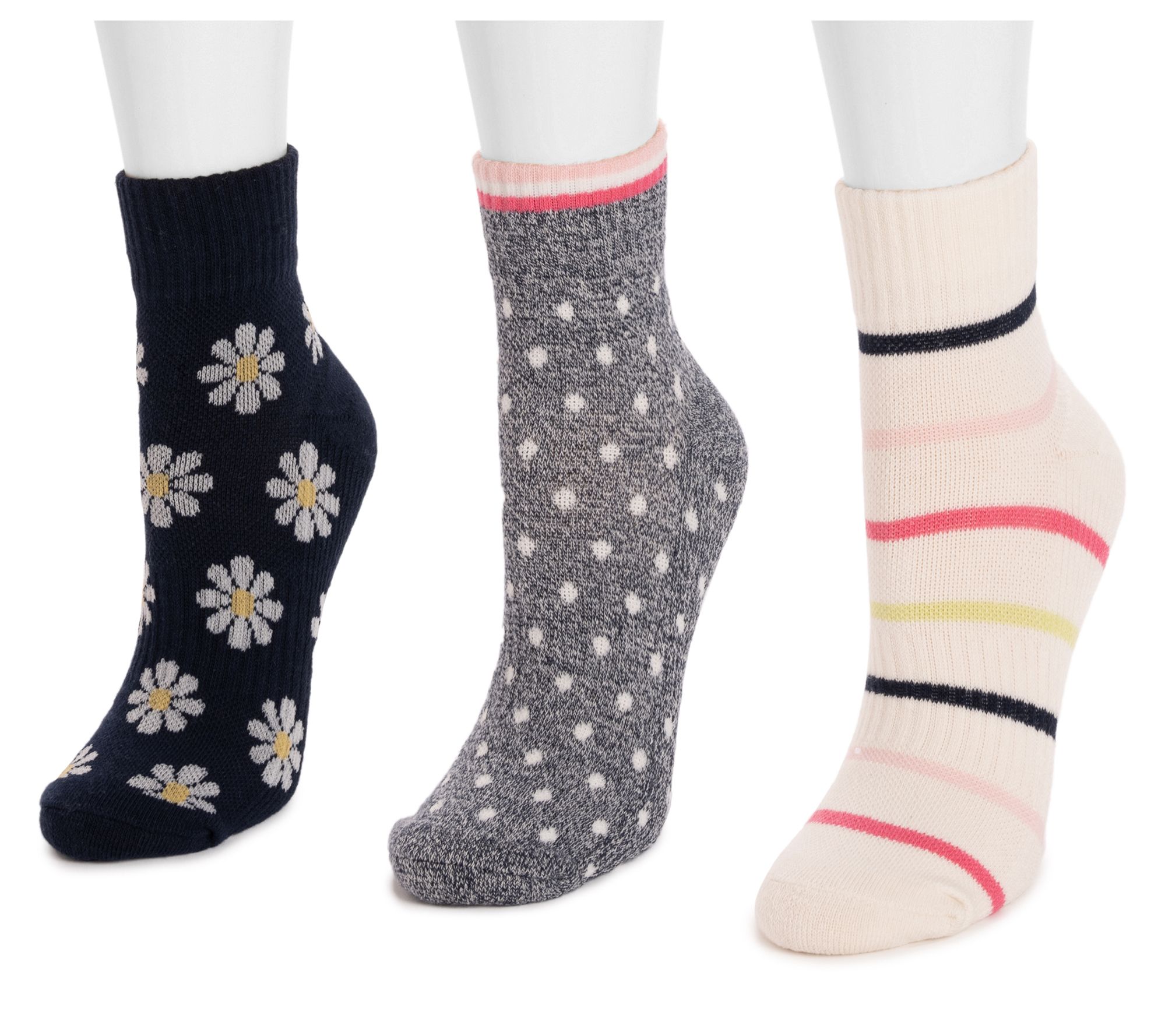 MUK LUKS Set of 3 Quarter Crew Cotton Compression Socks