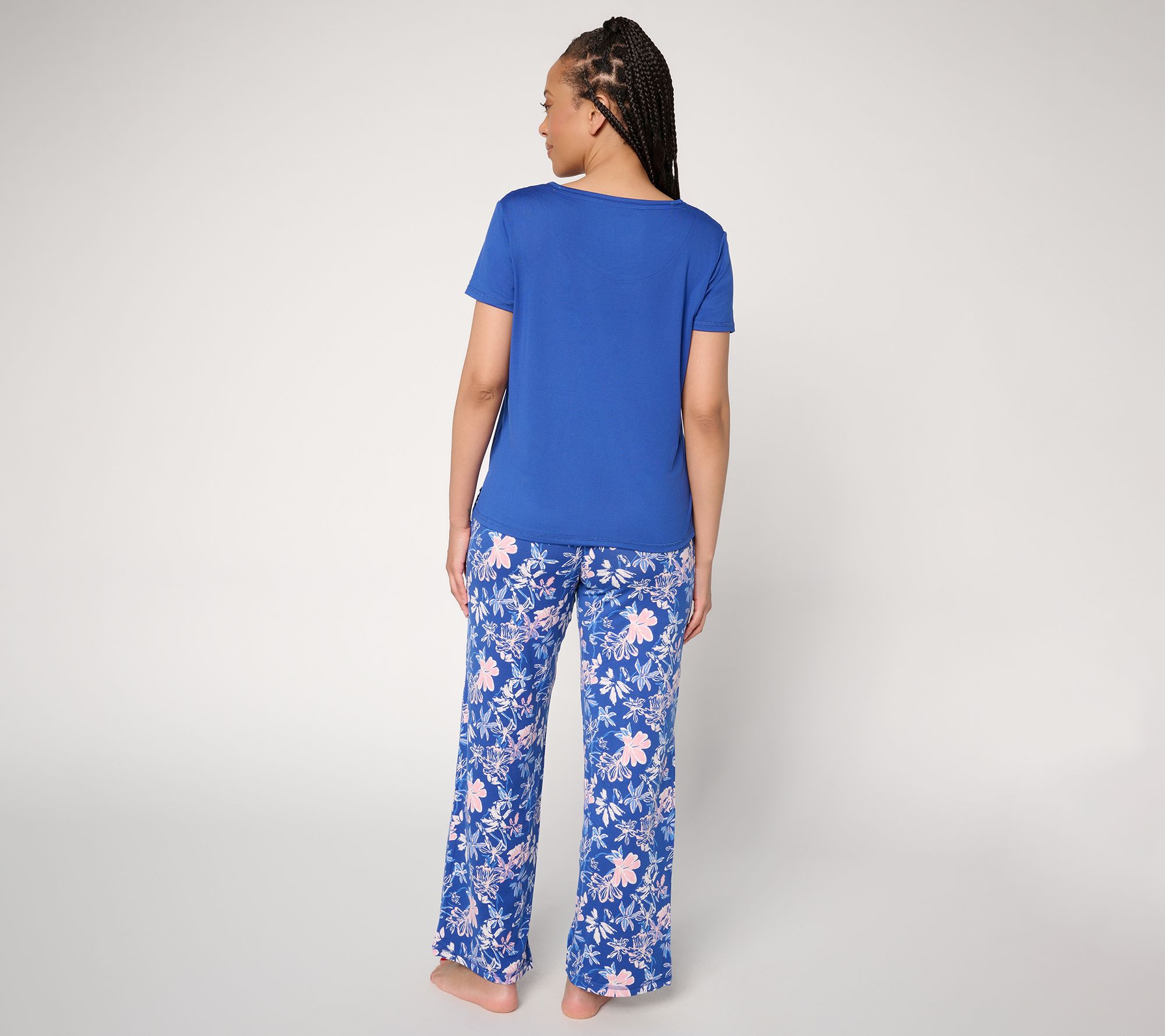 Whether you're easing into bedtime or savoring a quiet morning, this PJ set keeps comfort at the forefront -- and is stylish enough for company! The button-detailed tee paired with straight-leg pants offers an effortless transition from lounging to lights out, in a stretchy knit that moves with you. From MUK LUKS.