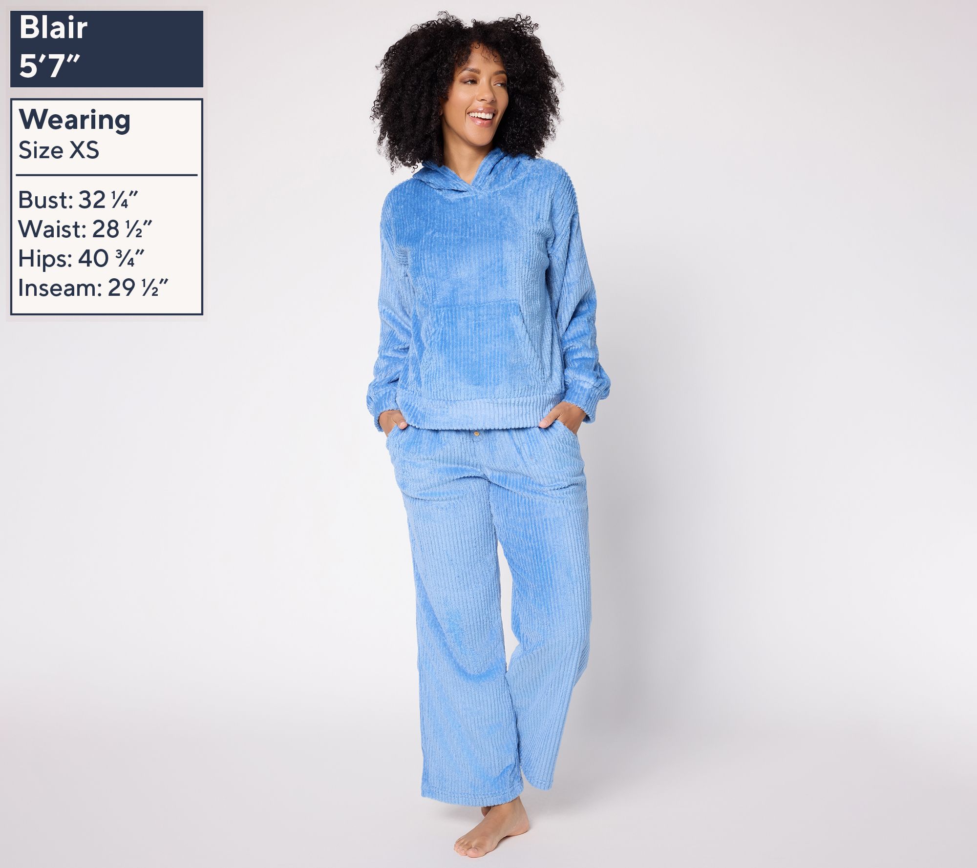 Do you dream in Silky Velour? Now you can entertain, shop, and go out to eat in it too, thanks to this practical-meets-plush lounge set. It goes places PJs can't, with a generous hood and allover ribbing for soft structure and a posh presentation. And when you cross the threshold to your cozy home environs? No change of wardrobe required for curling up with a good read, streaming your favorite series, or catching a nap. From MUK LUKS.