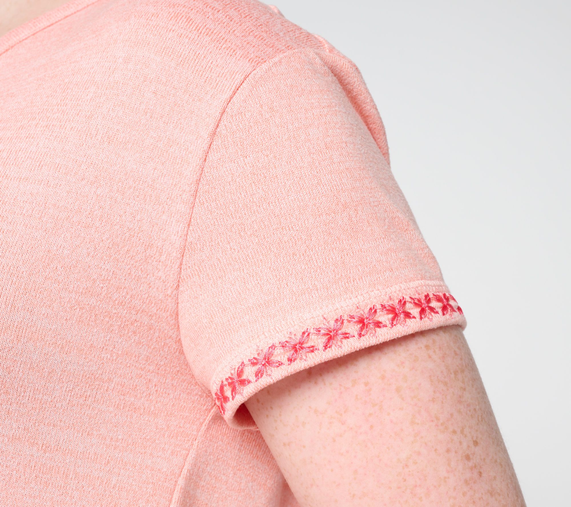 Top Features: V-neckline, short sleeves, side slits