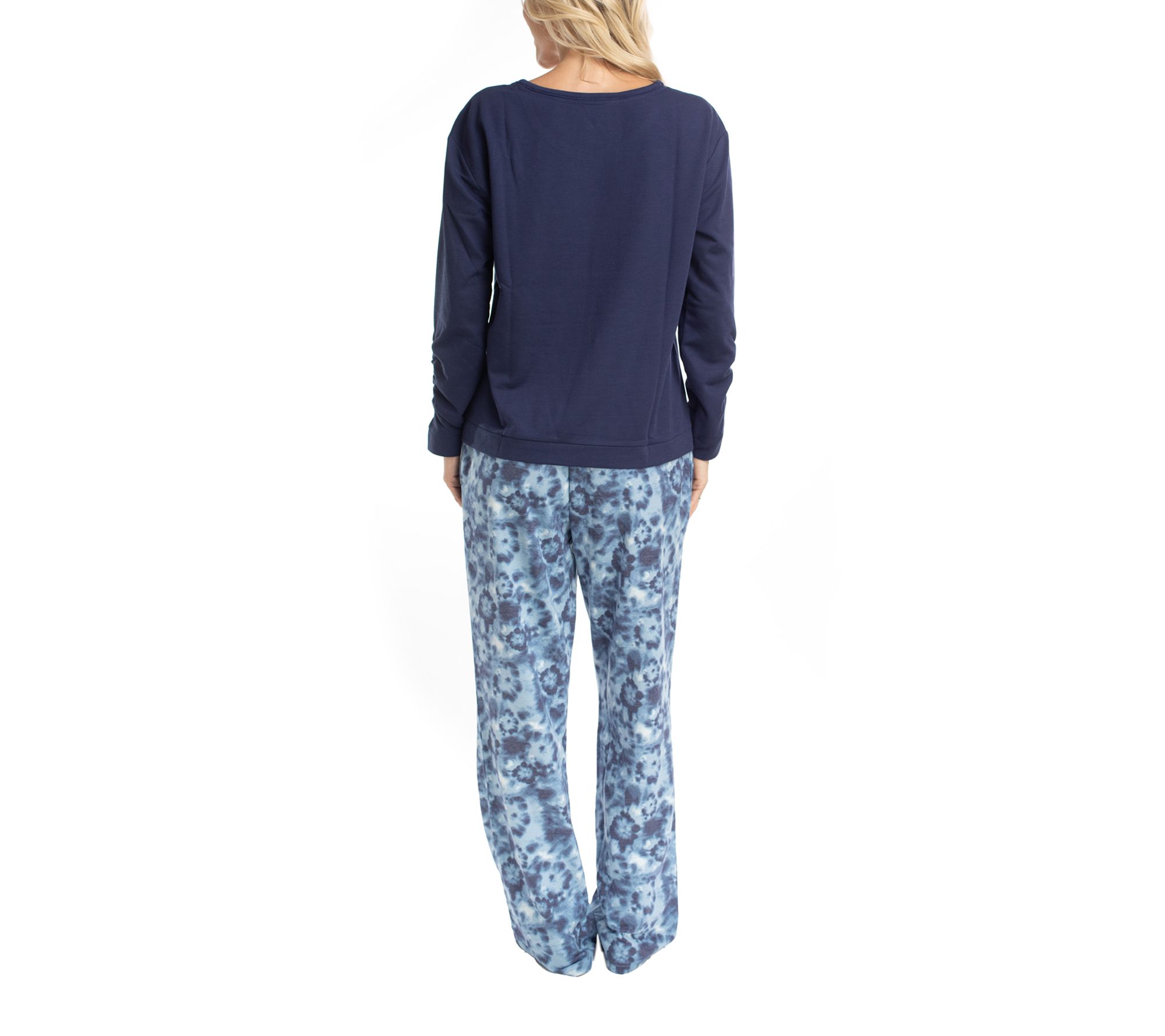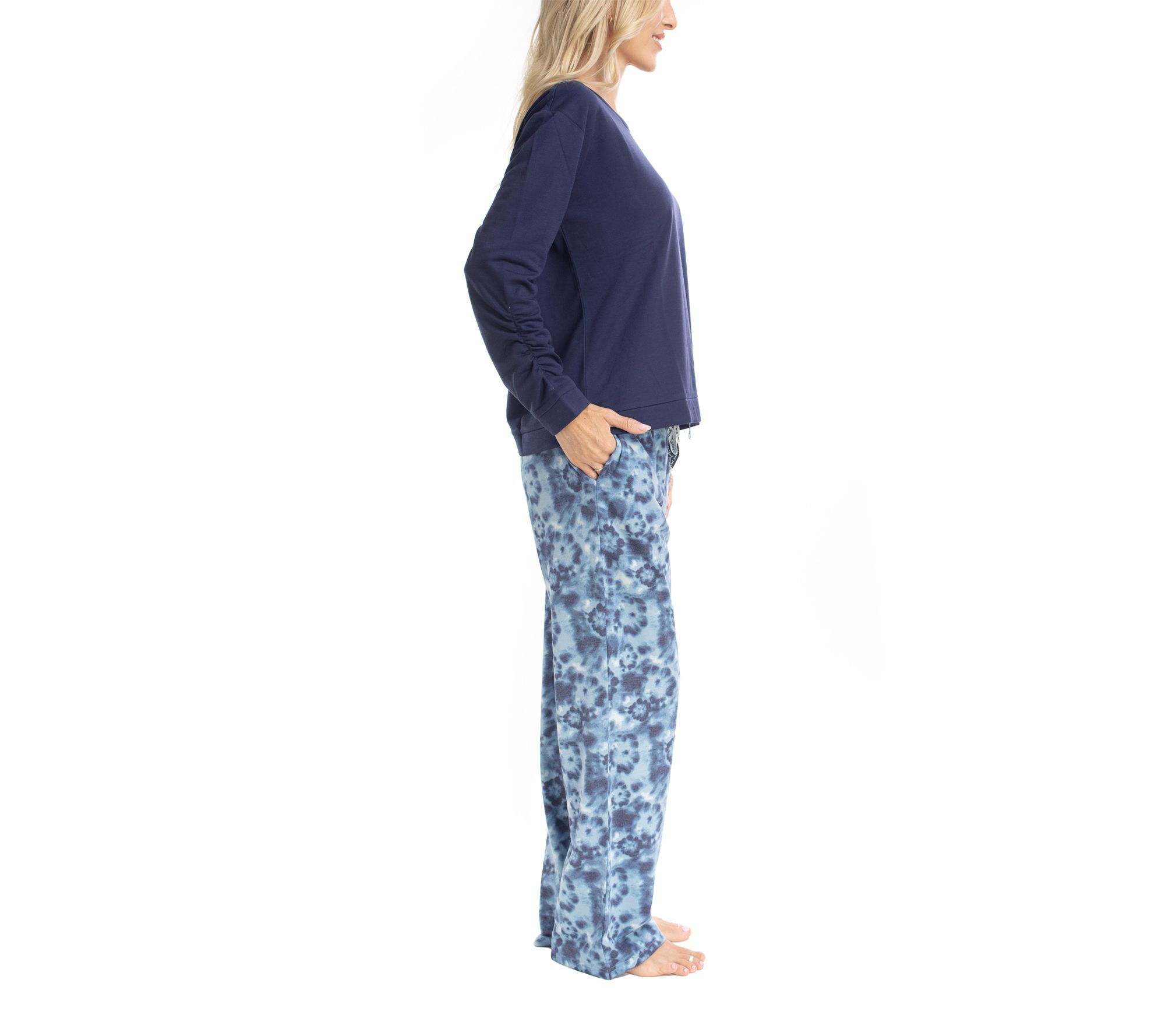Whether you're winding down after a long day or enjoying a cozy weekend morning, this pajama set surrounds you in plush comfort. The long-sleeve top features ruched sleeve details for a touch of style, while the soft elastic-waist pants keep you relaxed with handy pockets and easy movement. From MUK LUKS.