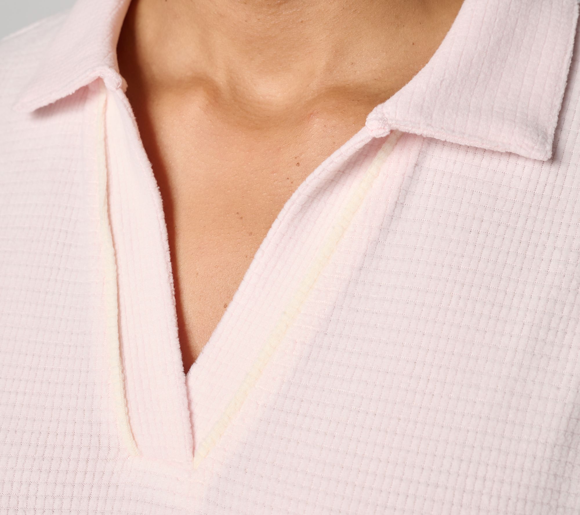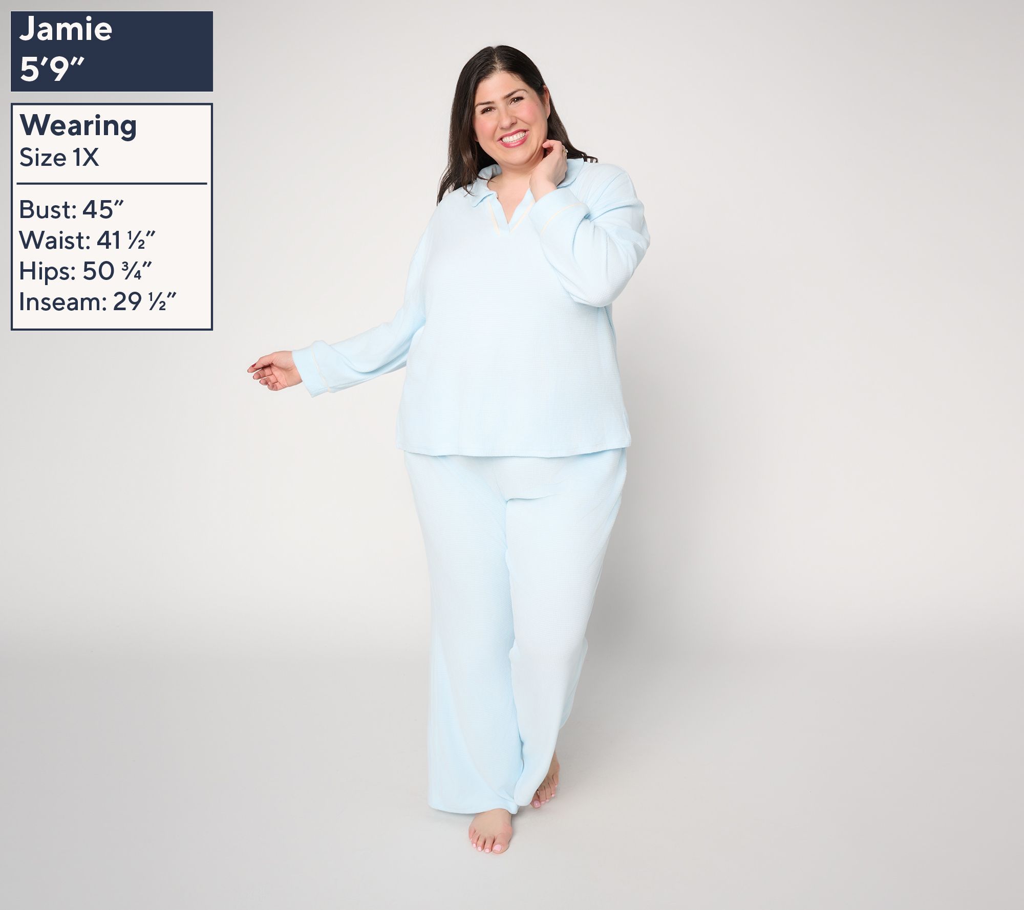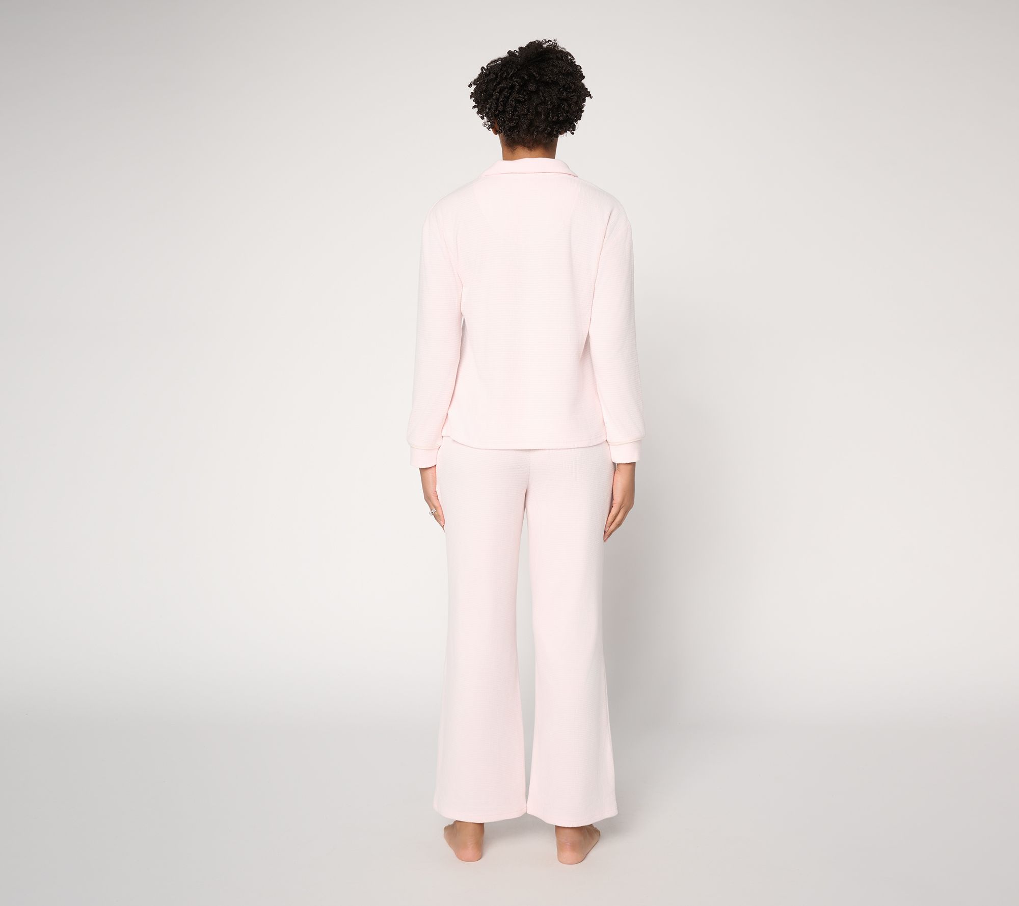 Whether you're winding down after a busy day or easing into the weekend, this boucle lounge set brings snuggly comfort and trend-right style together in one cozy combination. With a V-neck top, flared-leg pants, and a graceful silhouette, it's designed for laid-back moments at home, from movie nights to morning routines. From MUK LUKS.