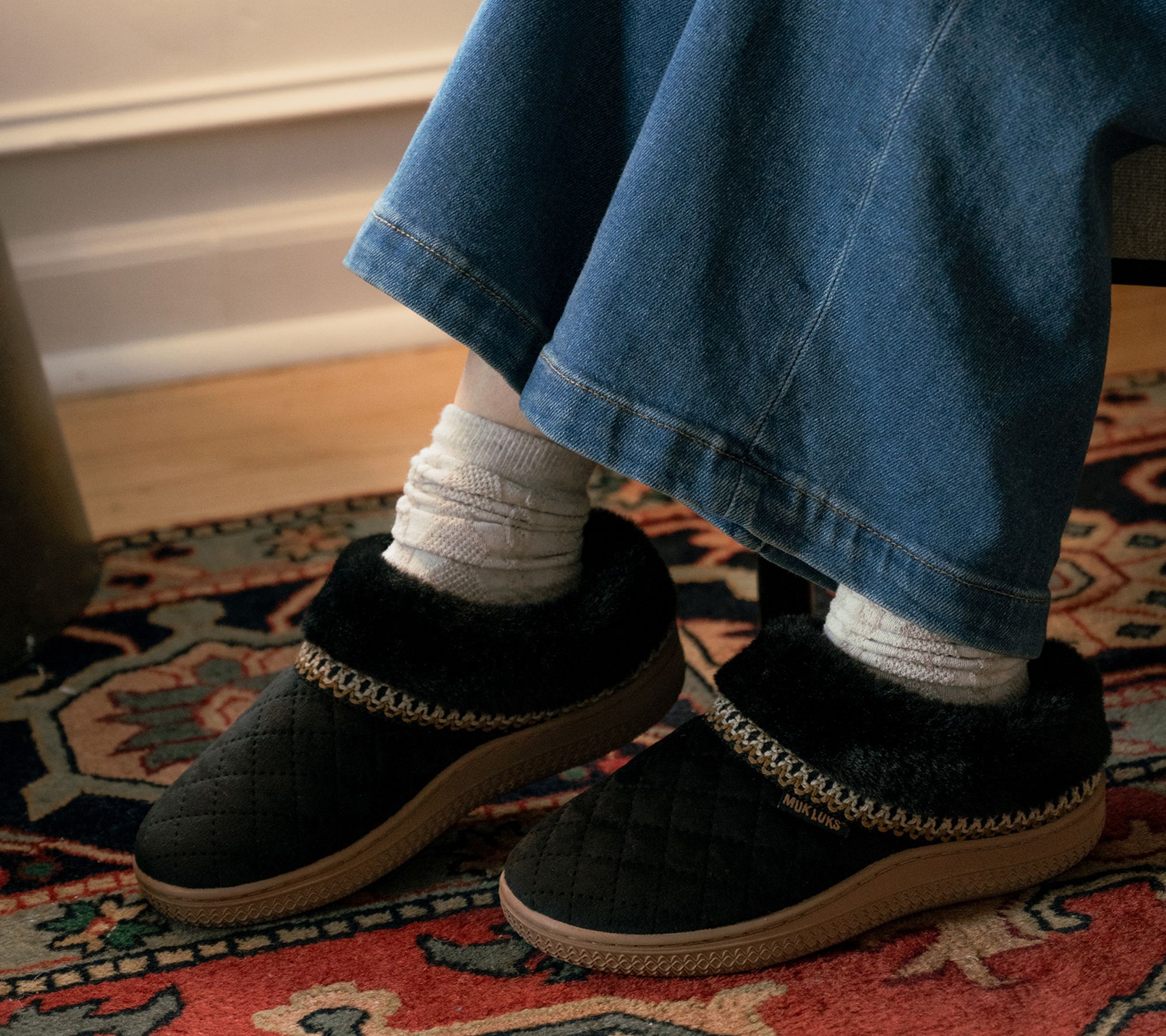 Bring comfort to chilly mornings with these cozy clogs featuring a plush velour upper, faux fur lining, and built-in contoured support. Slip them on for lounging at home or making a quick run outside, knowing the sturdy outsole keeps each step steady. From MUK LUKS.