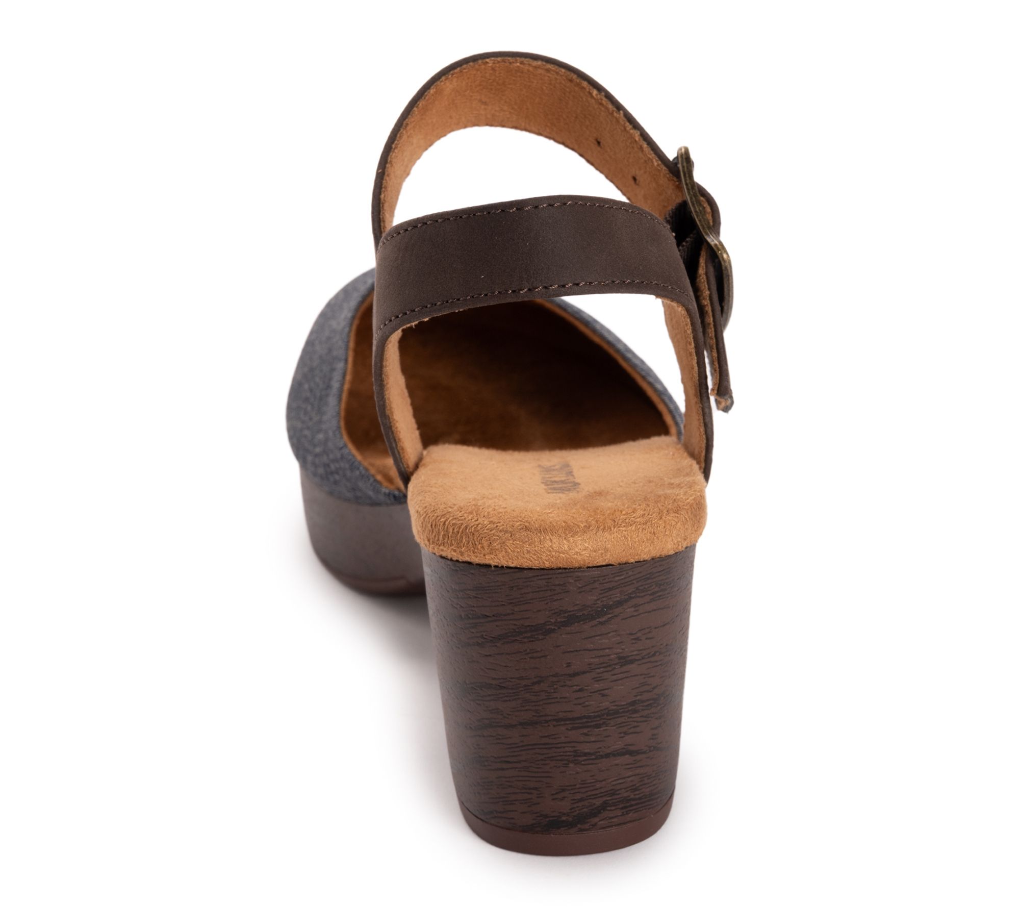 • Rounded toe, buckle closure, memory foam insole