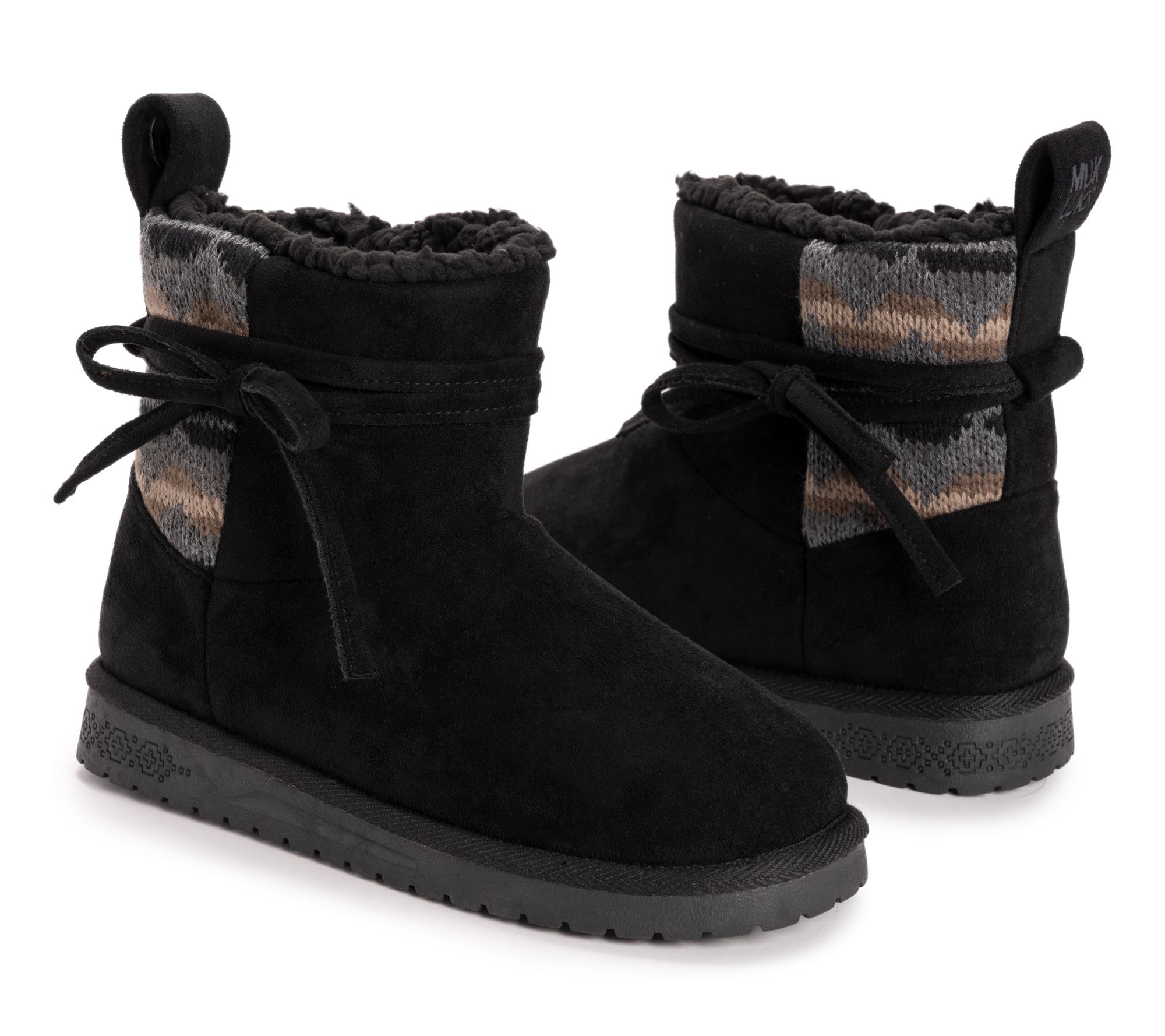 Essentials by MUK LUKS Teenie boots are the perfect blend of style and comfort for the colder months. With their beautiful knit design and cute tie detail, these boots not only keep your feet warm but also add a touch of cabin-chic style to your outfit. From MUK LUKS.