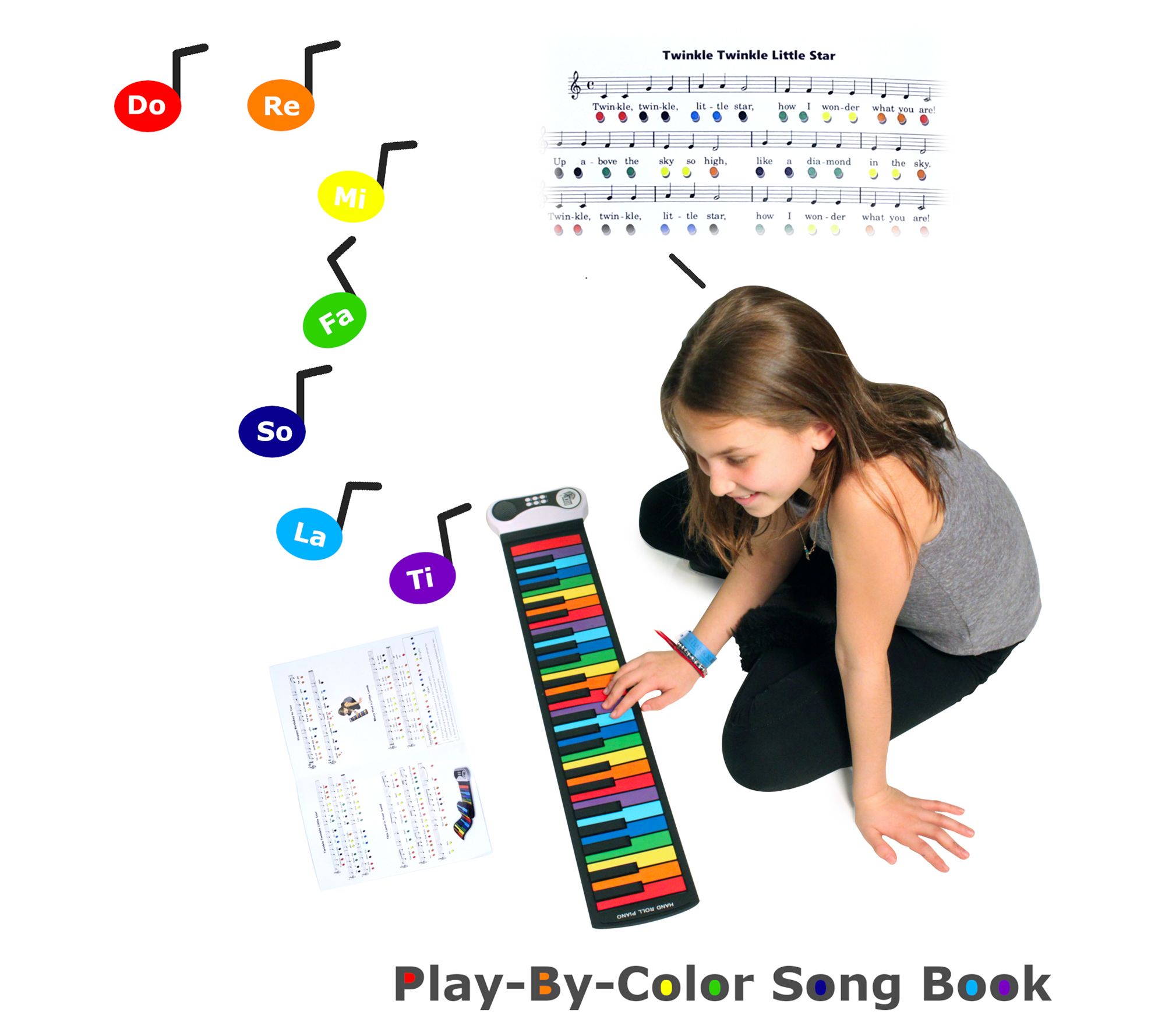 • Includes piano, USB power cord, and play-by-color booklet