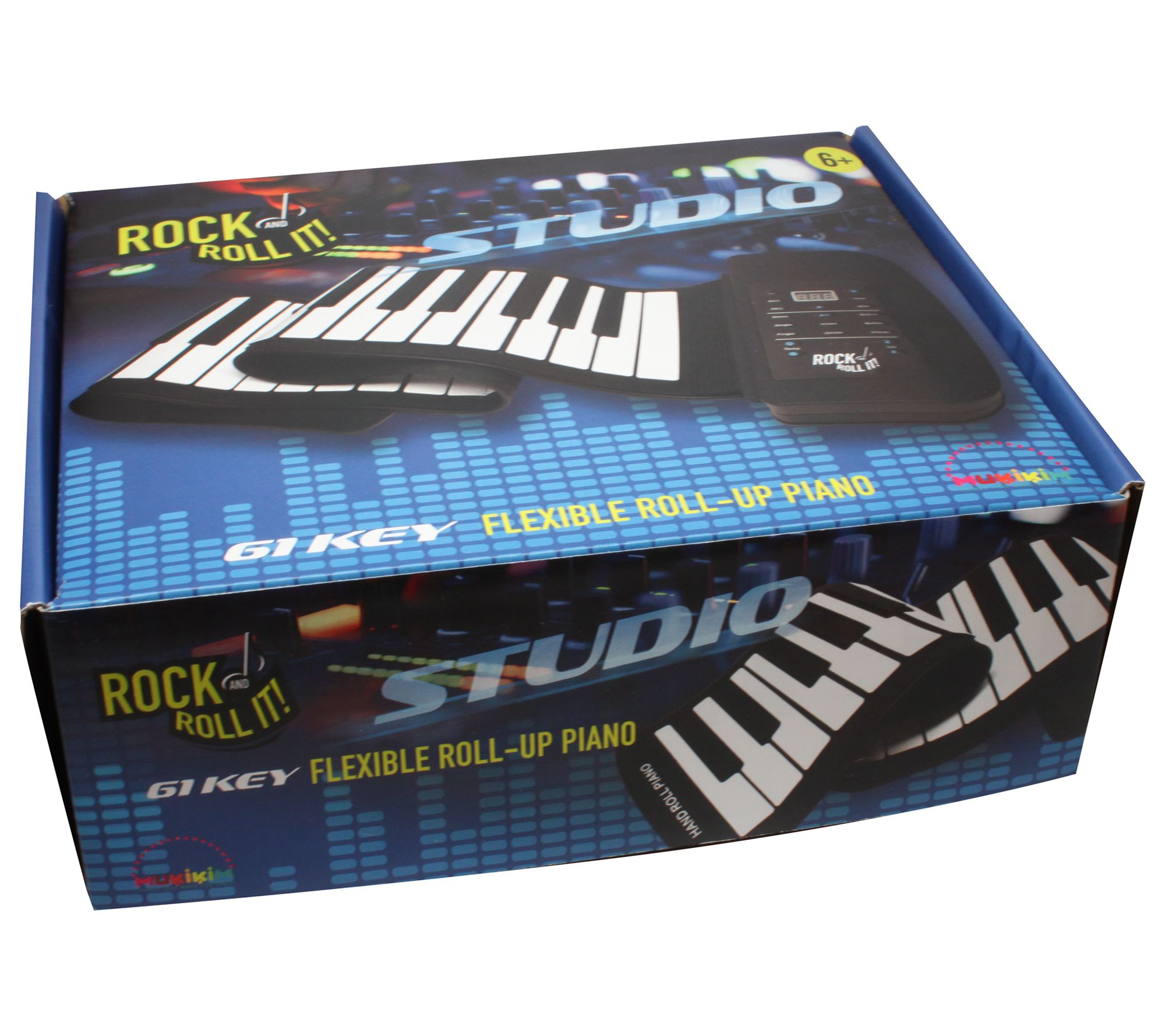 Take your musical creativity on the go with the MukikiM Rock And Roll It Studio Piano Toy. This portable and flexible piano is powered by a rechargeable battery and comes with volume control, headphone capability, and MIDI compatibility for endless musical possibilities. From MukikiM.
