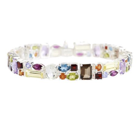 Not your ordinary tennis bracelet, this updated design is vibrant with color, shape, and style. Beautiful gemstones in various cuts and hues come together to form the luxe look, set in high-polished sterling silver for a sleek finish.