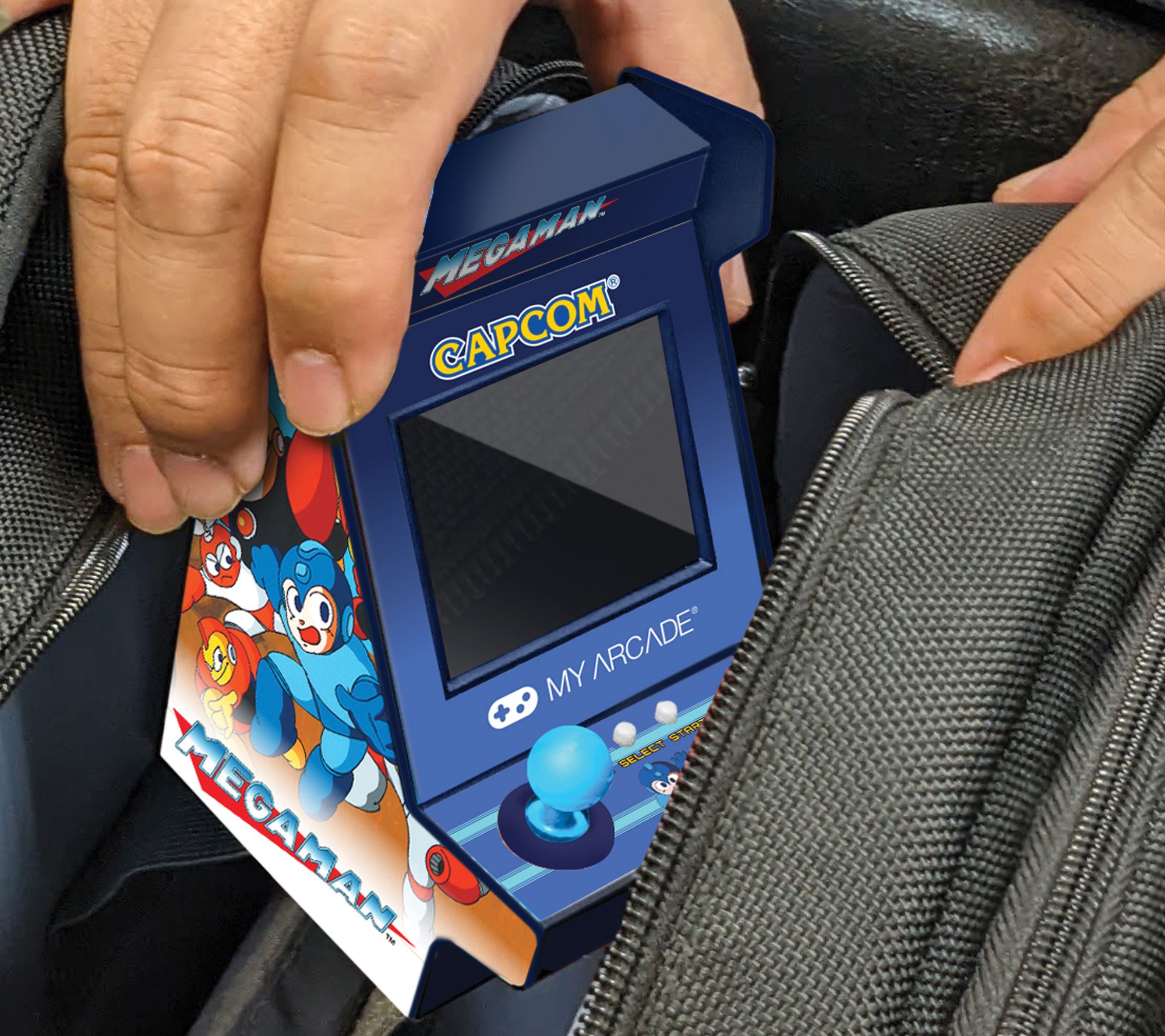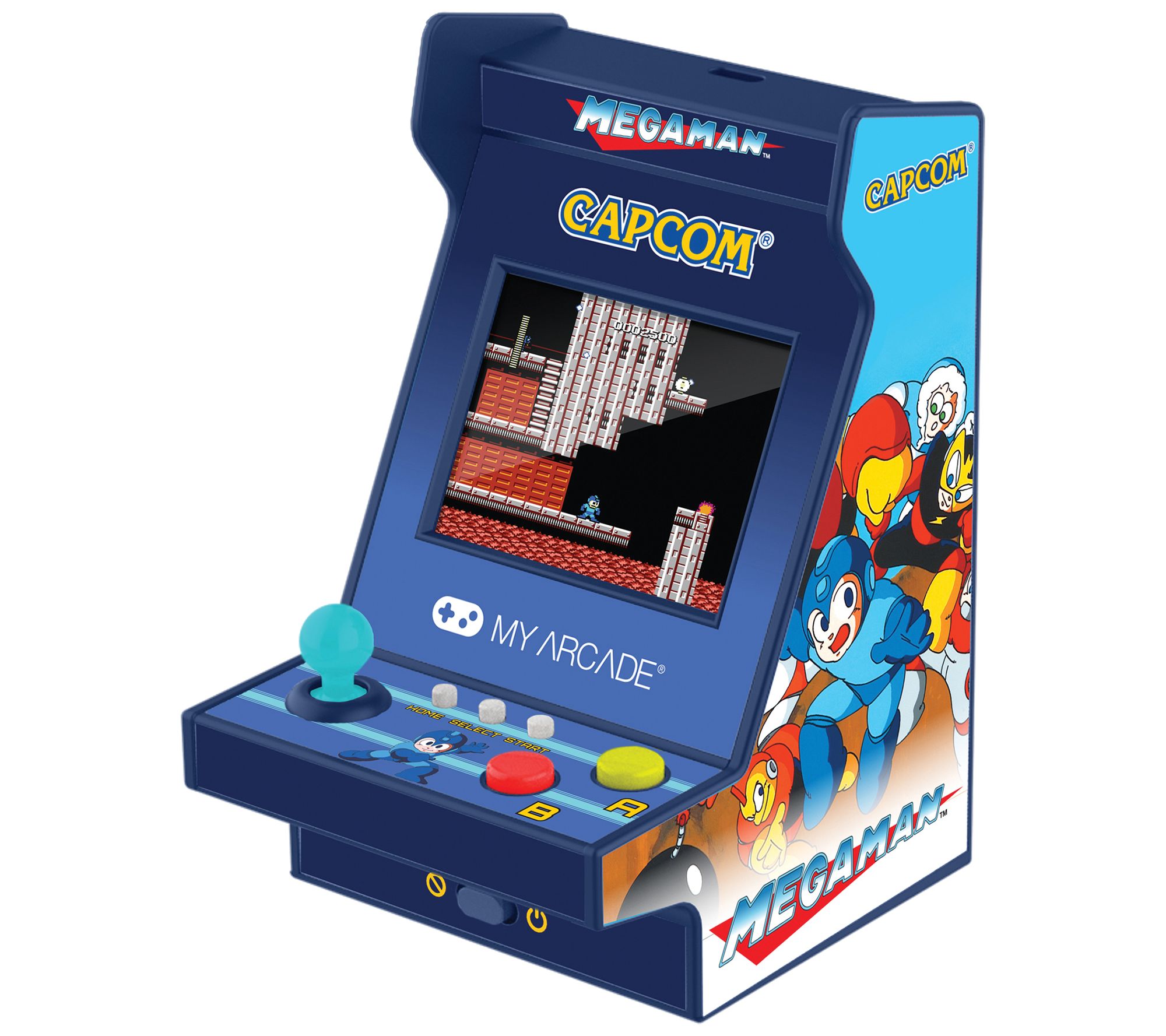 The Mega Man Nano Player Pro Portable Retro Arcade is the ideal addition to any game room, office, or display case! This mini arcade cabinet is great for on-the-go gaming or displaying on your desk. With six officially licensed titles, including Mega Man, Mega Man 2, Mega Man 3, Mega Man 4, Mega Man 5, and Mega Man 6, you'll be able to relive the classic adventures of the Blue Bomber wherever you go. From My Arcade.