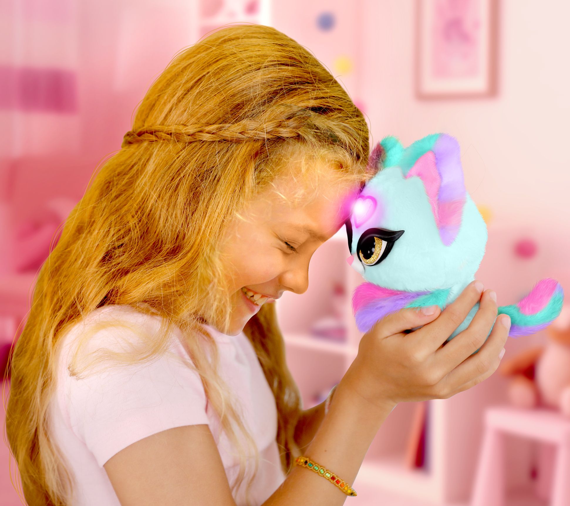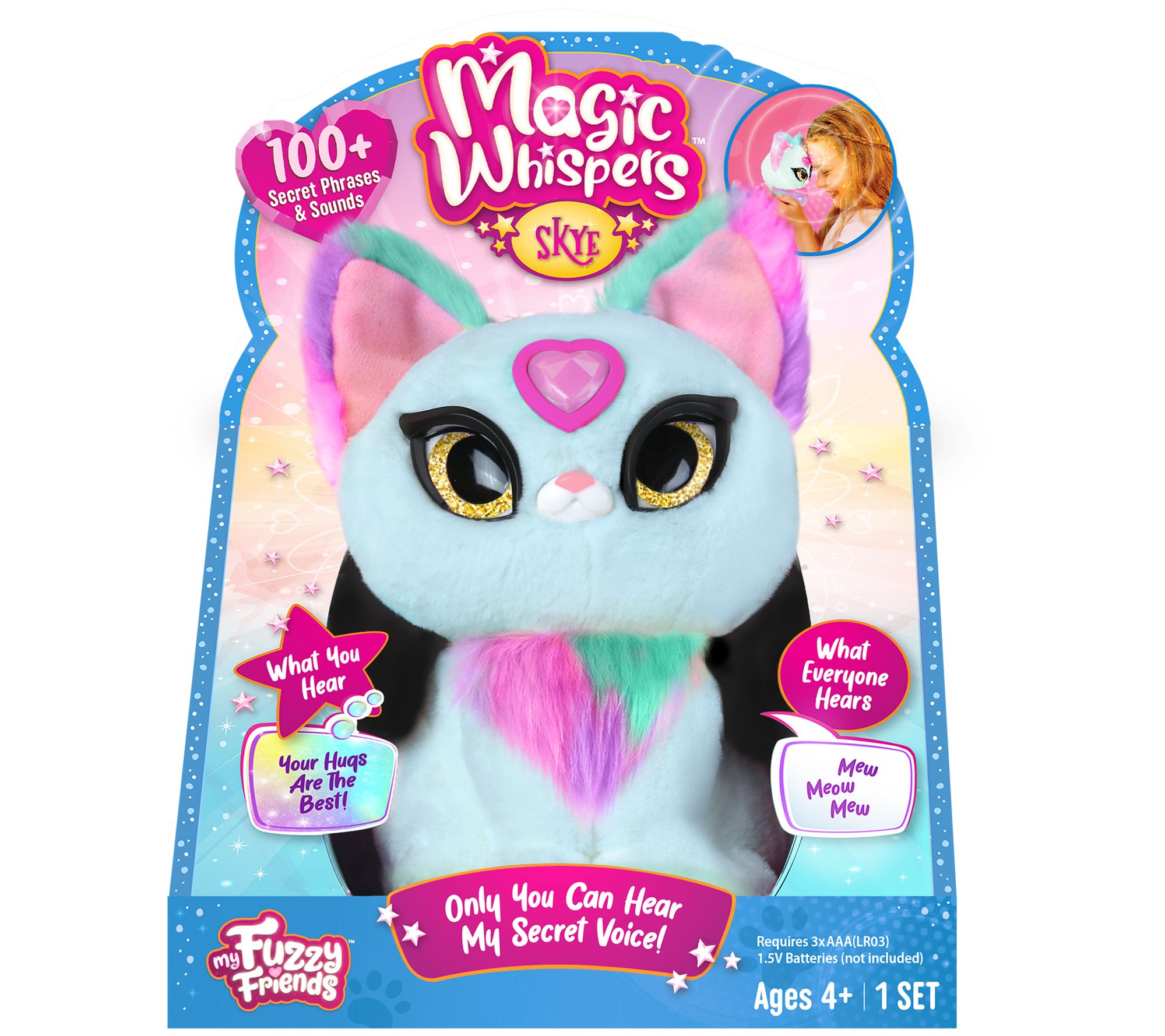 Everyone can hear Magic Whispers Kitty meow and purr, but when your child presses their forehead against the kitty's light-up heart, only they can hear what their adorable friend is really saying.