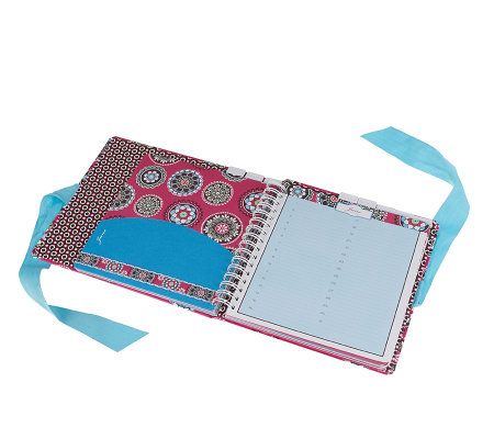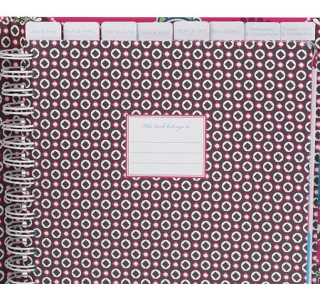 A lovely way to organize. Keep your greeting cards, birthday calendars, and celebration dates together with this beautiful organizer book. The spiral-bound, hardcover book features a pretty print cover and a fabric bow closure. From My Home by Vera Bradley.