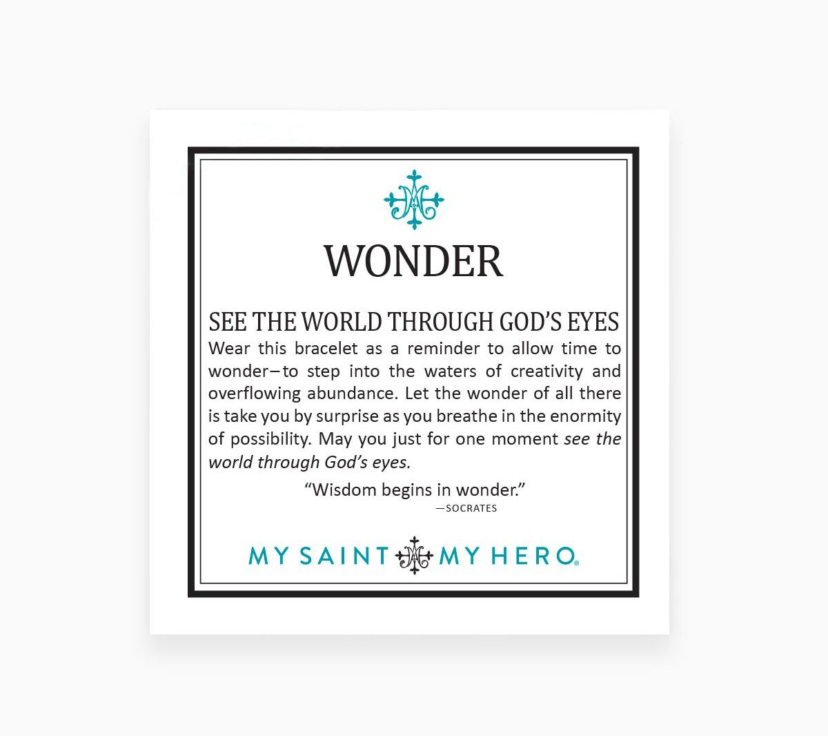 A thoughtful reminder to allow time to wonder, this inspirational bracelet also encourages you to step into the waters of creativity and overflowing abundance. From My Saint My Hero.