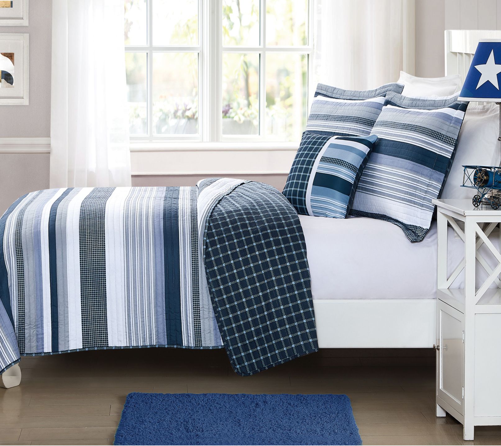 Ahoy! This classic stripe print with plaid textures helps coordinate your nautical-themed room. From My World.
