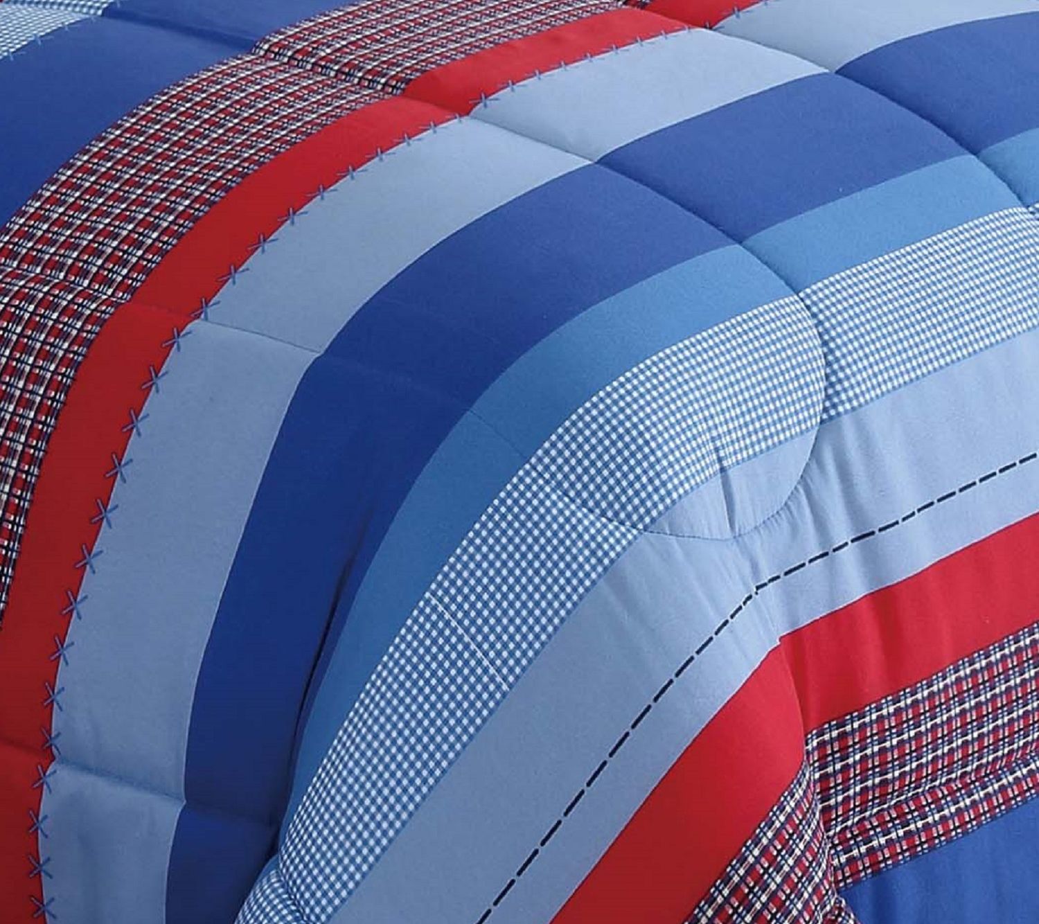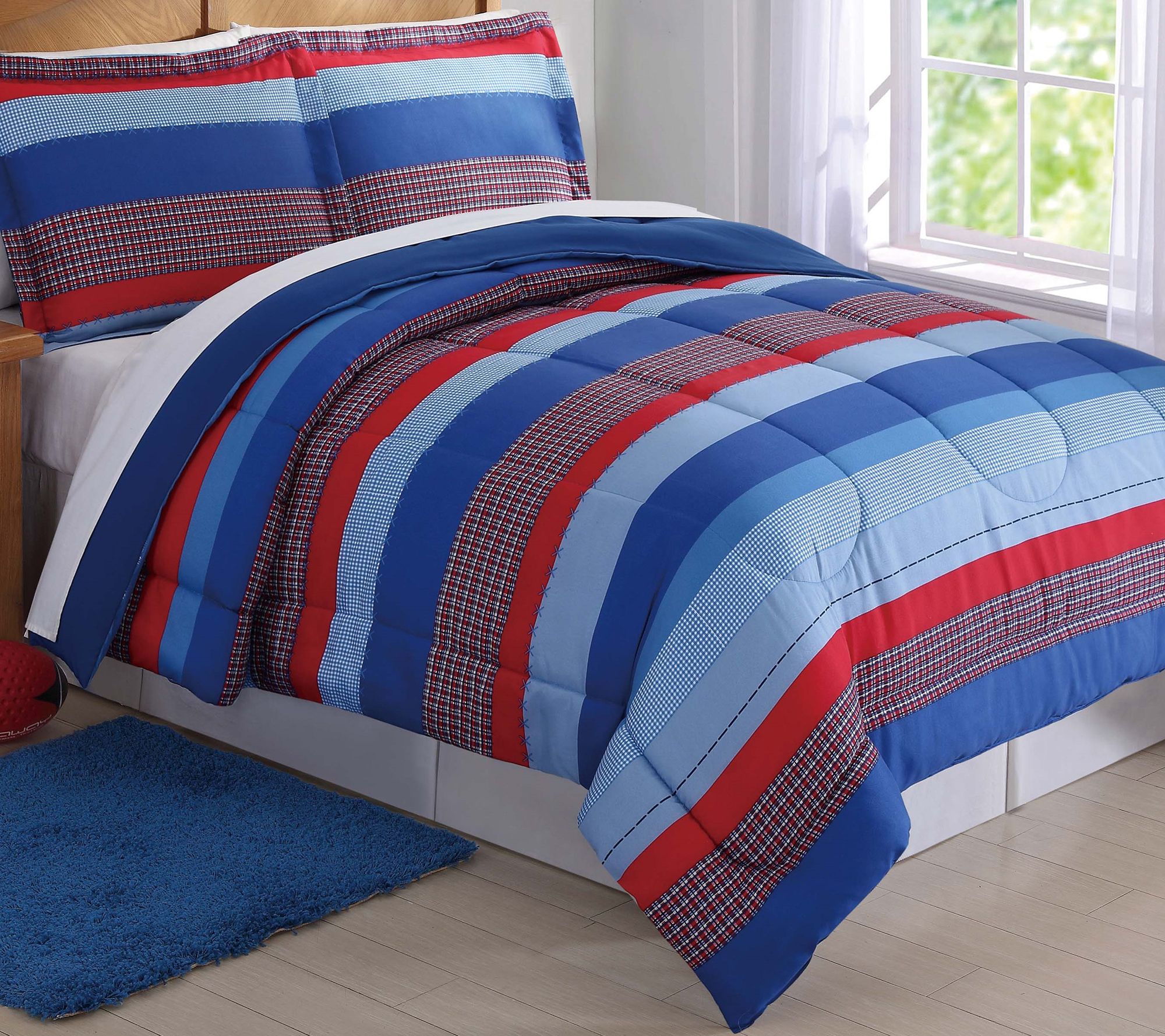 Easy to coordinate, this comforter set sets the stage with blue-and-red plaid patterns. From My World.