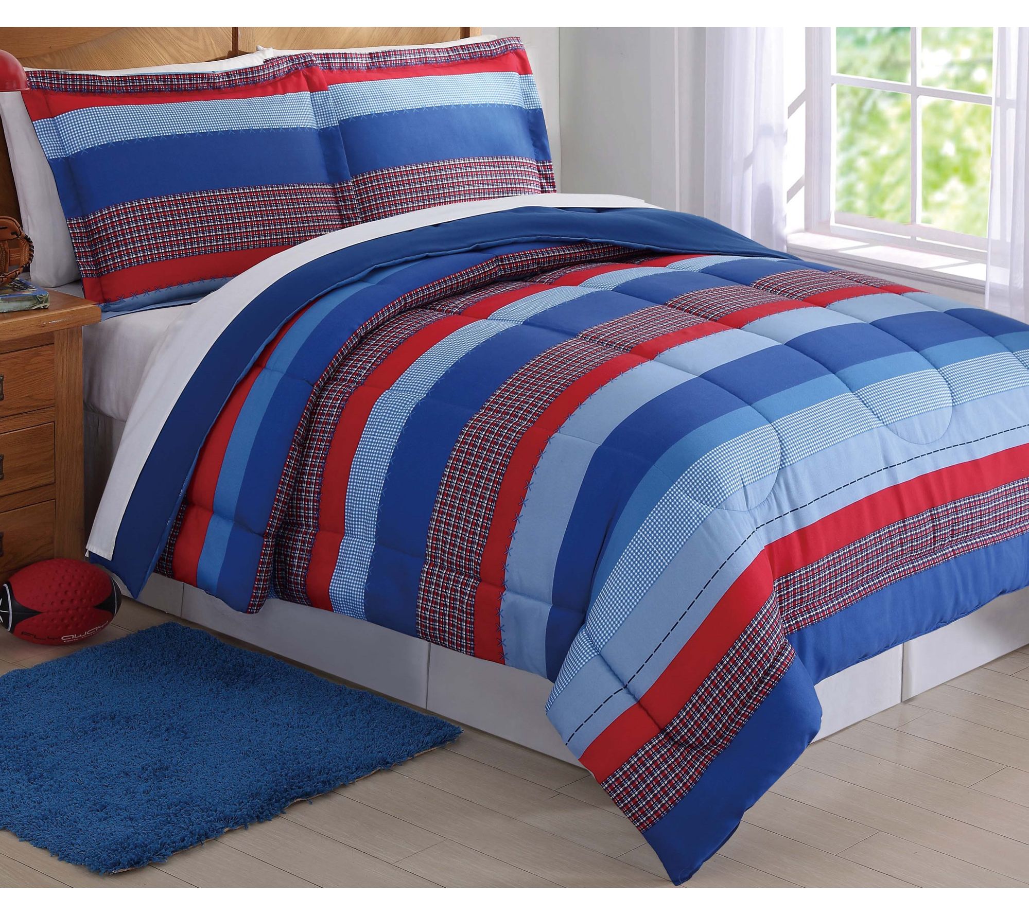 Easy to coordinate, this comforter set sets the stage with blue-and-red plaid patterns. From My World.