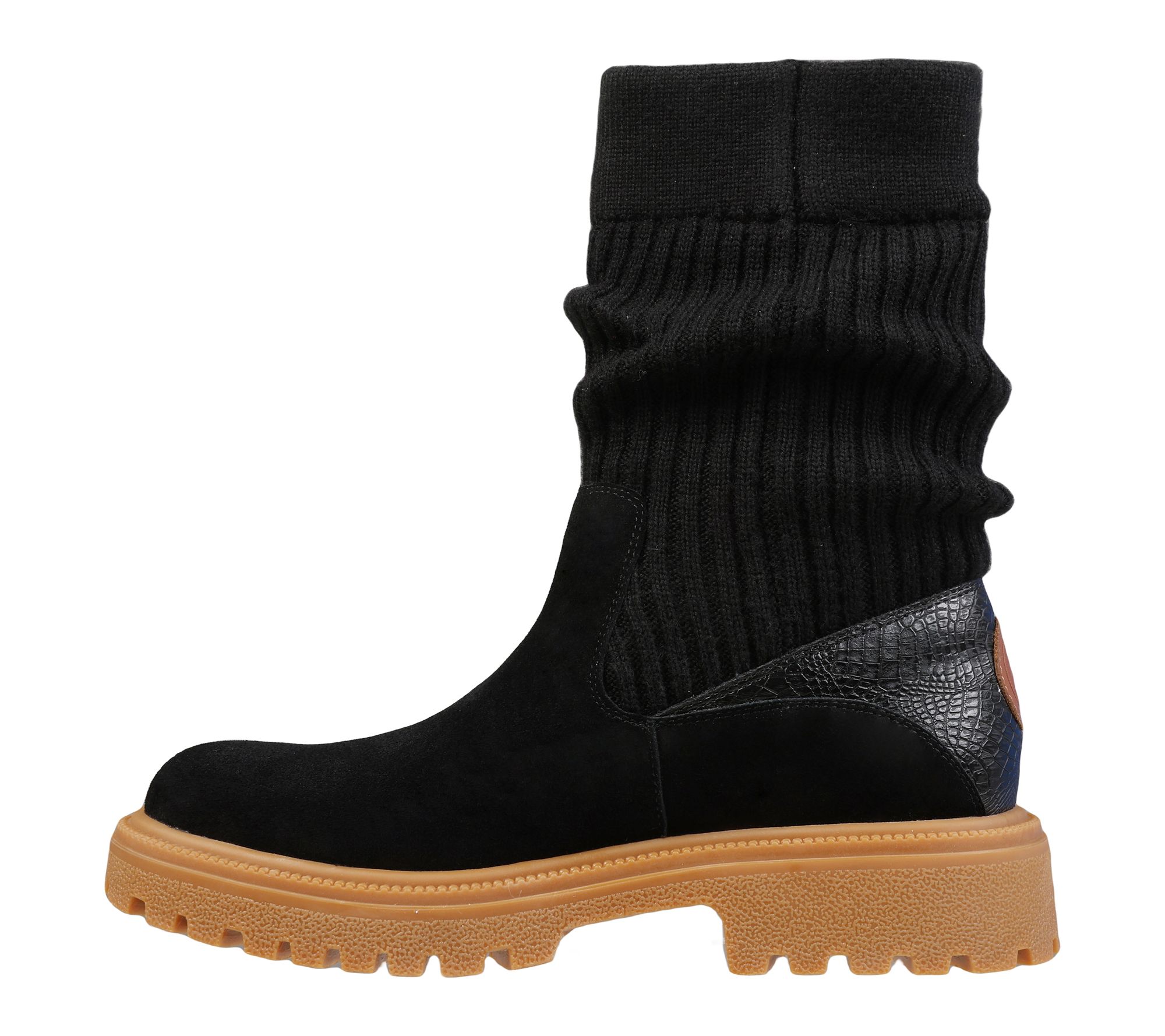 Whether you're heading out for errands or meeting friends for coffee, these suede boots combine a stylish knit cuff with effortless pull-on wear for comfortable days on the go. Wide stretch panels allow for easy movement, and the casual everyday design makes them easy to pair with your favorite jeans or leggings. From Mykos.