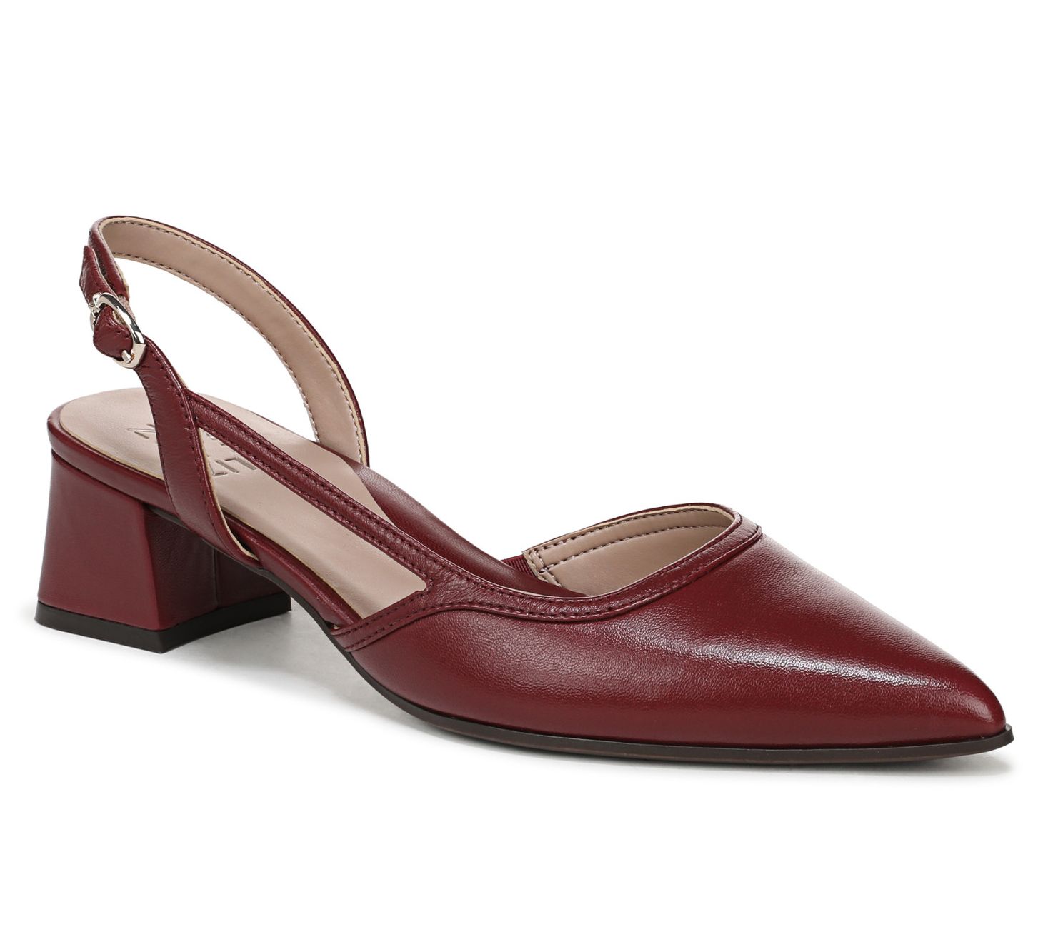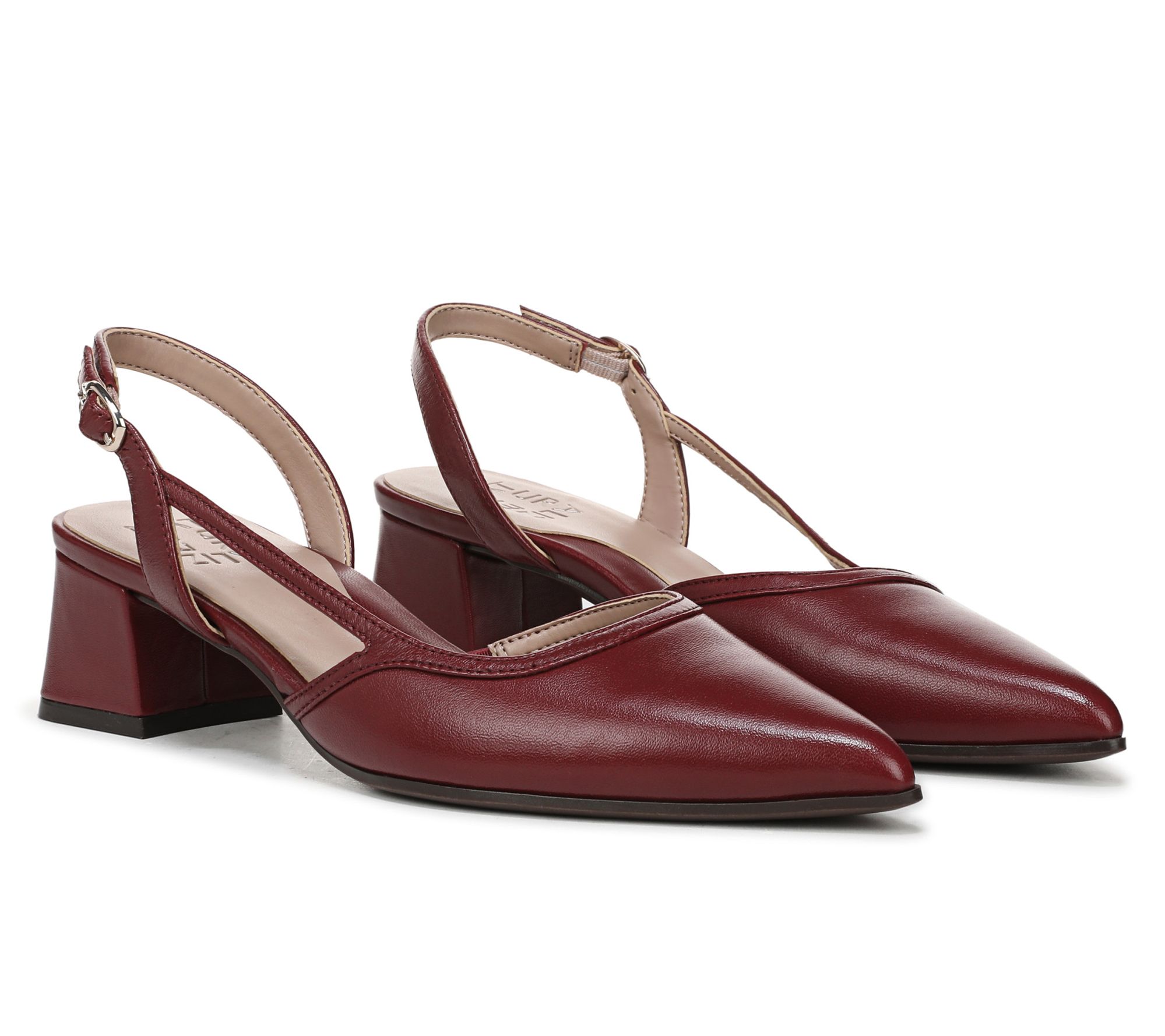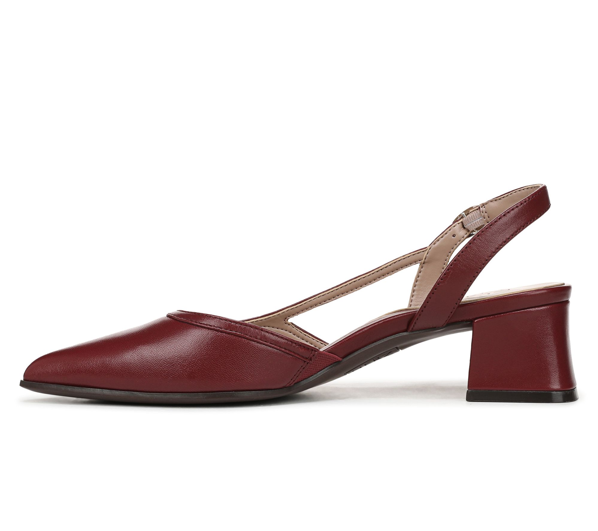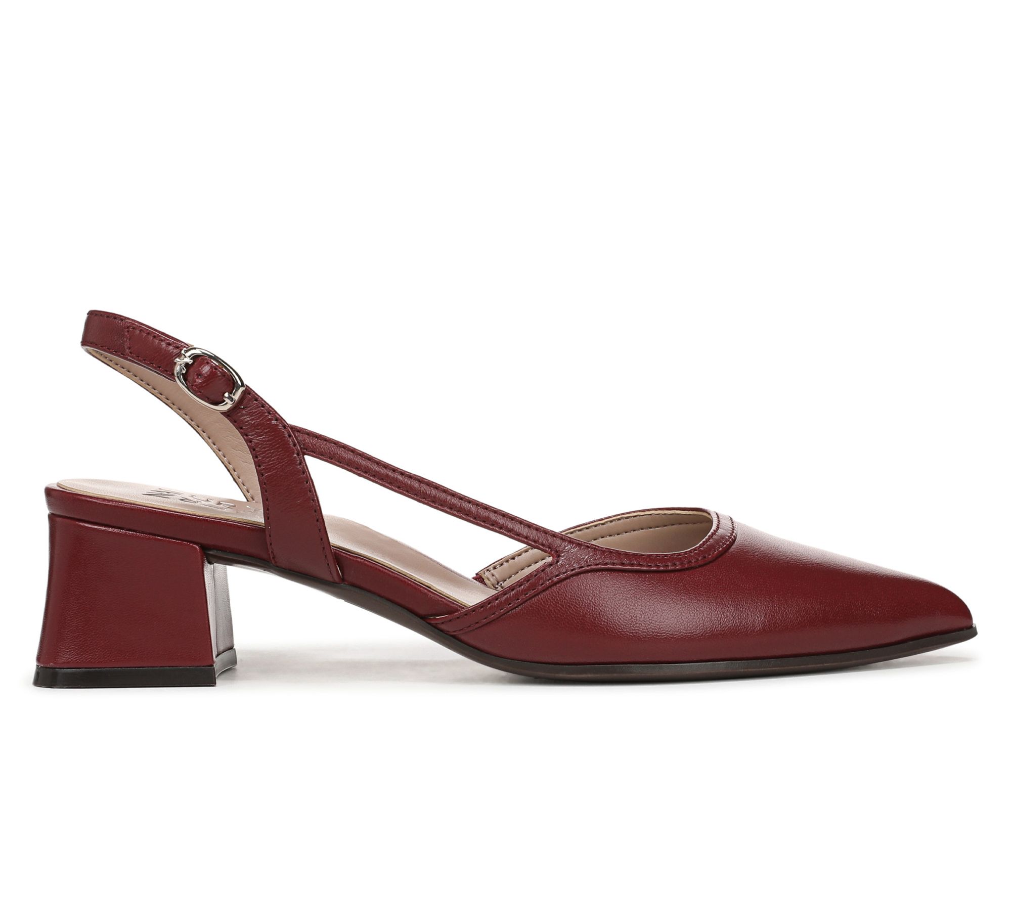 Slip into timeless polish with these Mila slingback pumps, designed to keep you comfortable through busy days and memorable evenings. Soft leather and an elegant pointed toe create a refined look, while the adjustable buckle and block heel add both stability and style for work meetings, dinners, and everything in between. From Naturalizer.